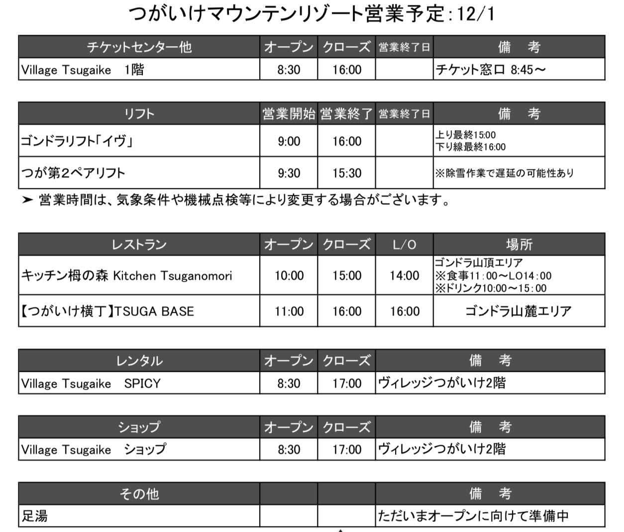 ■ 25-26ウィンターシーズン営業開始日のご案内【12/1決定】