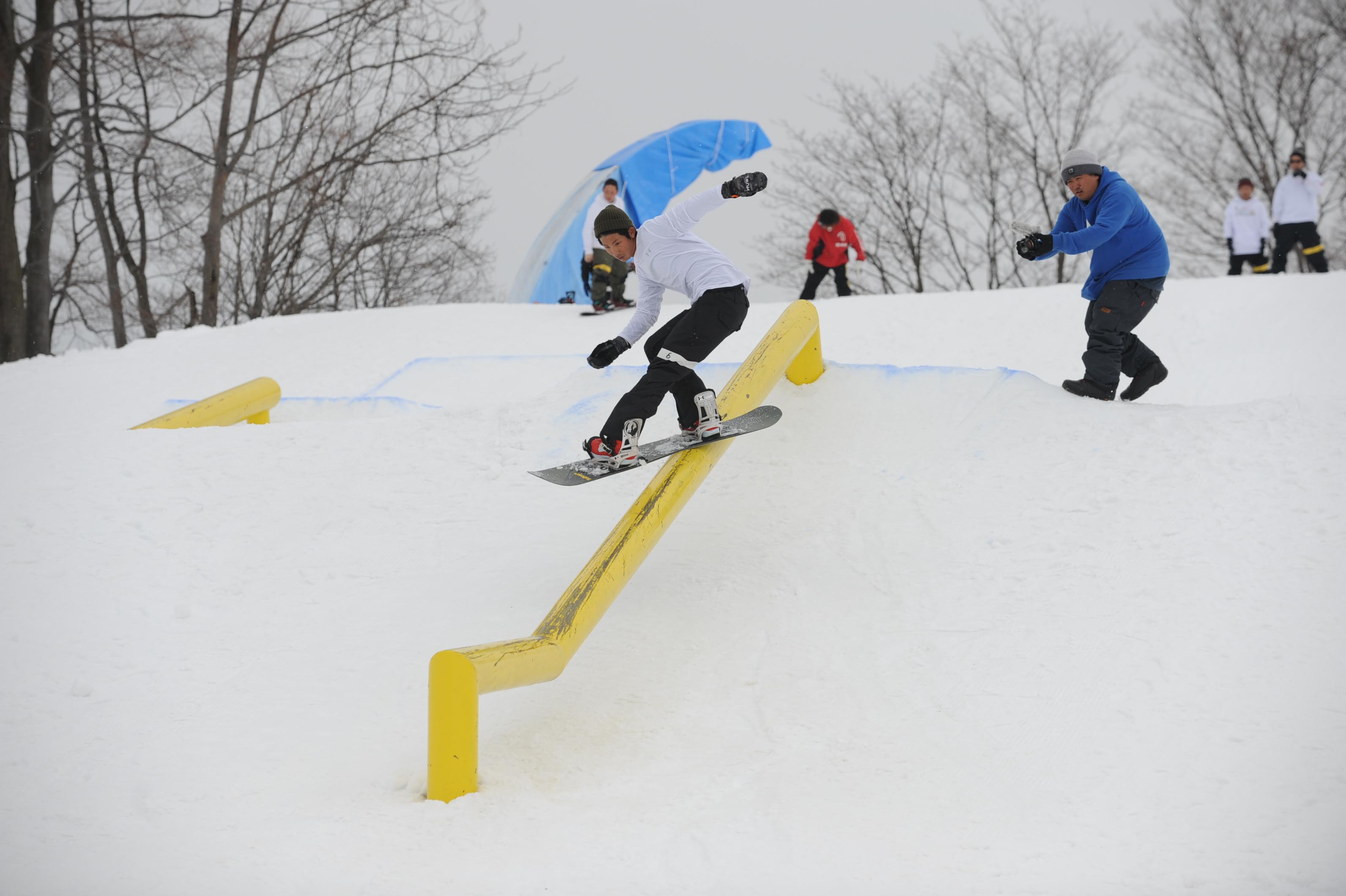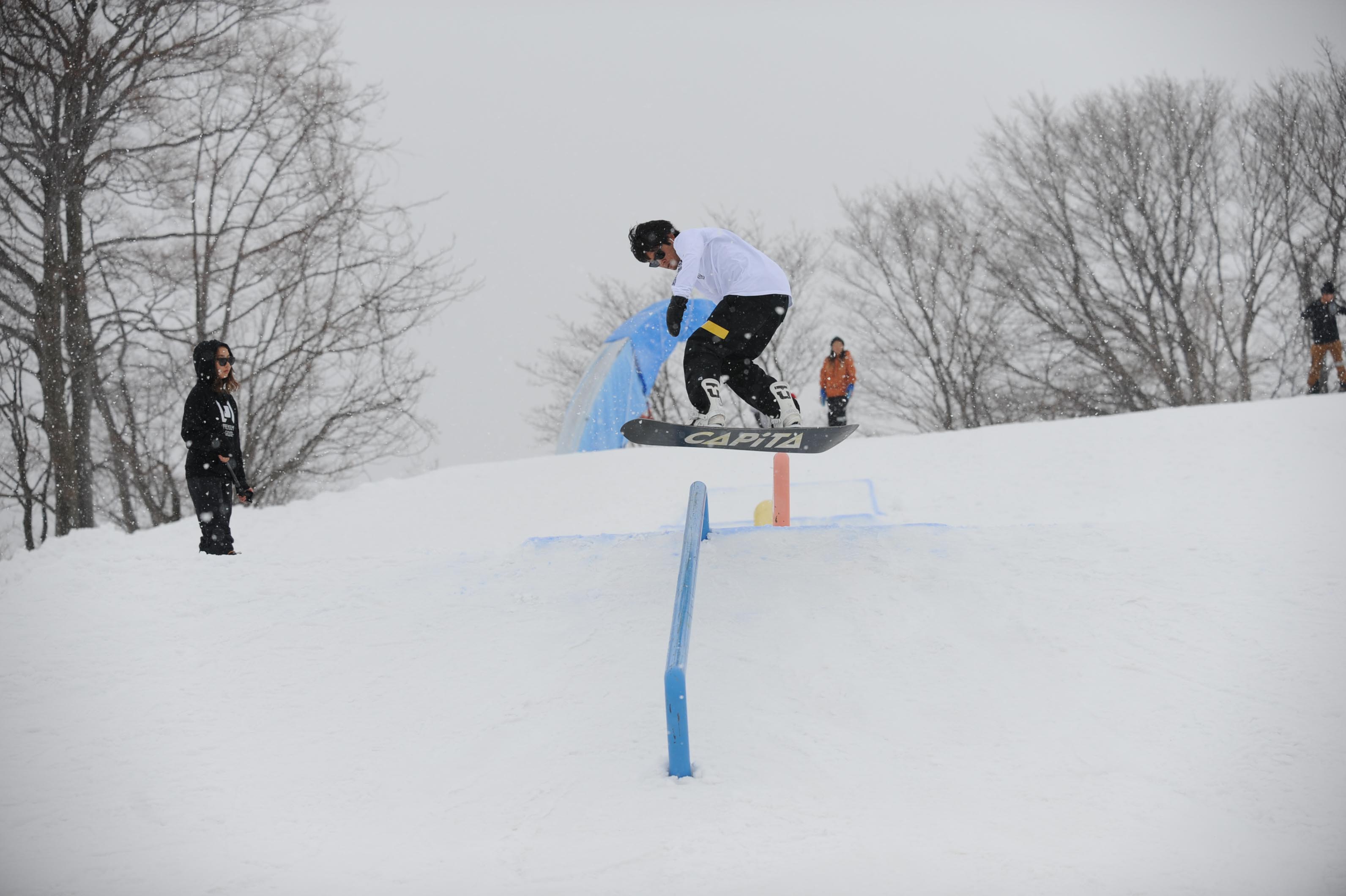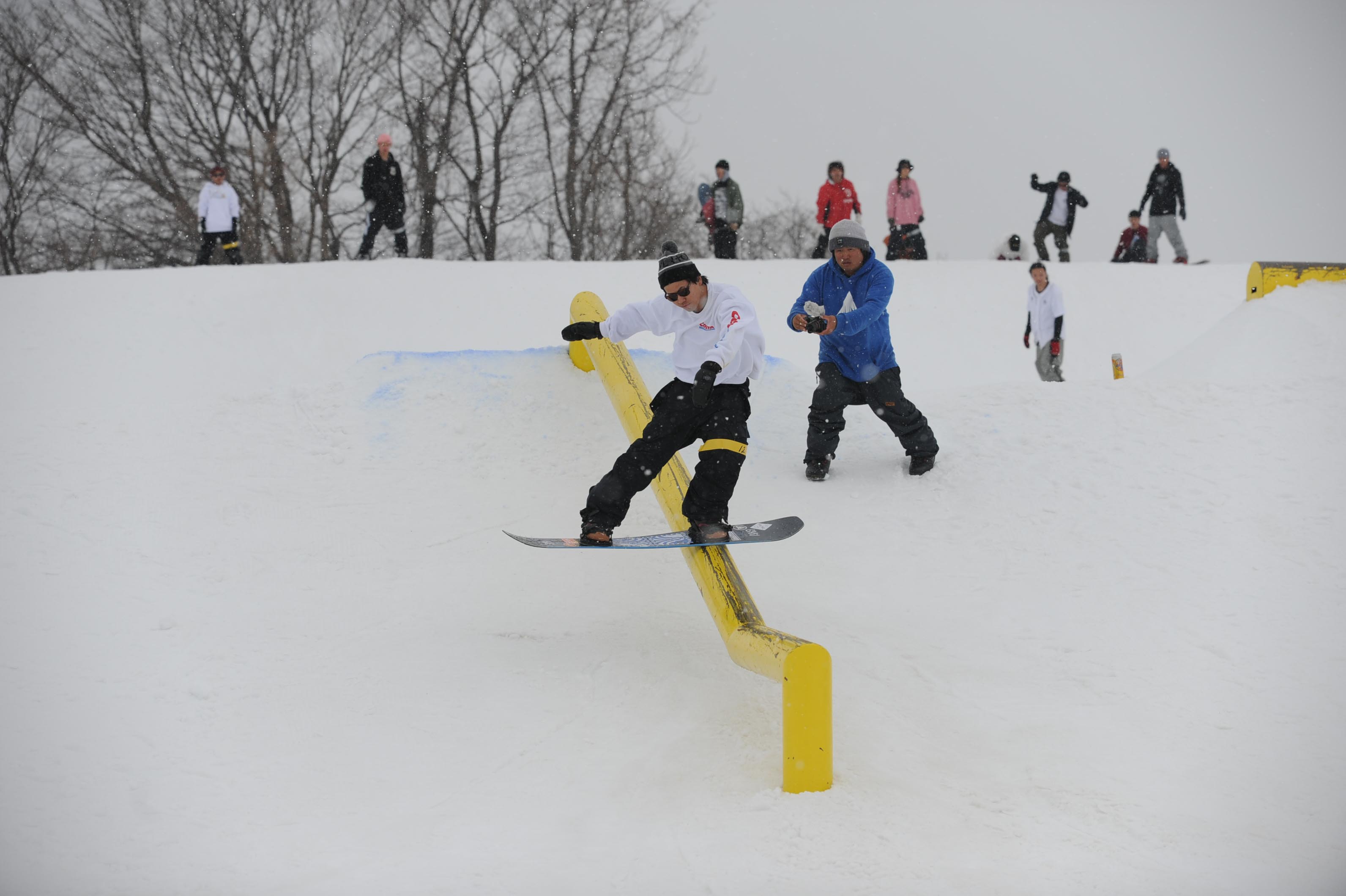 今年は板を走らせる為にアイテムの手前にパンピングできるように即席で雪を盛ったんですけど、それに苦戦してる人が多かったのかなと。あと、途中から雪が降って板が思うように走らなくて、予想以上に難しくなってしまった印象もありました。次回はそのあたりも考慮して、もっと楽しめるセクションにしていきたいと思ってます。