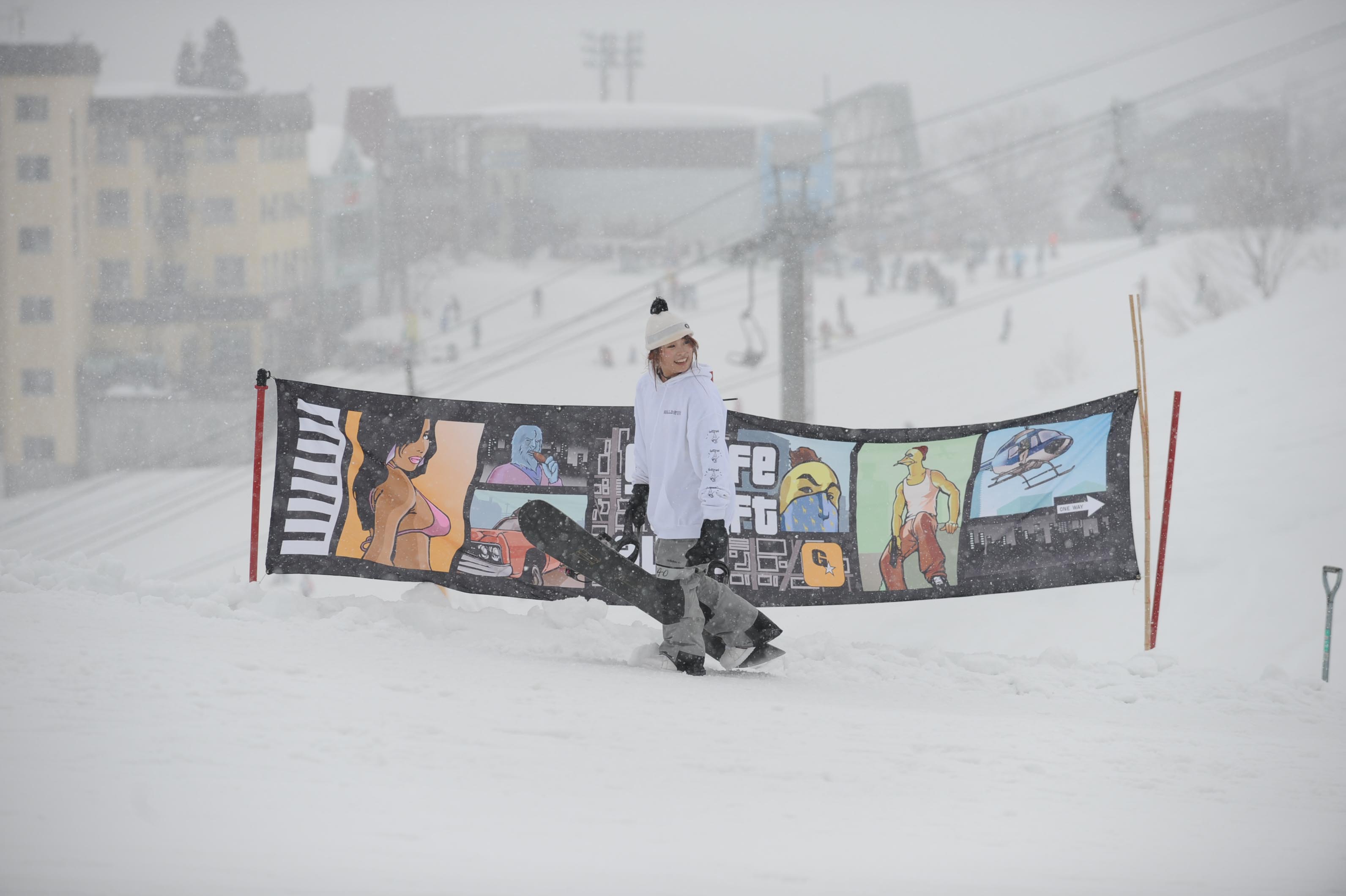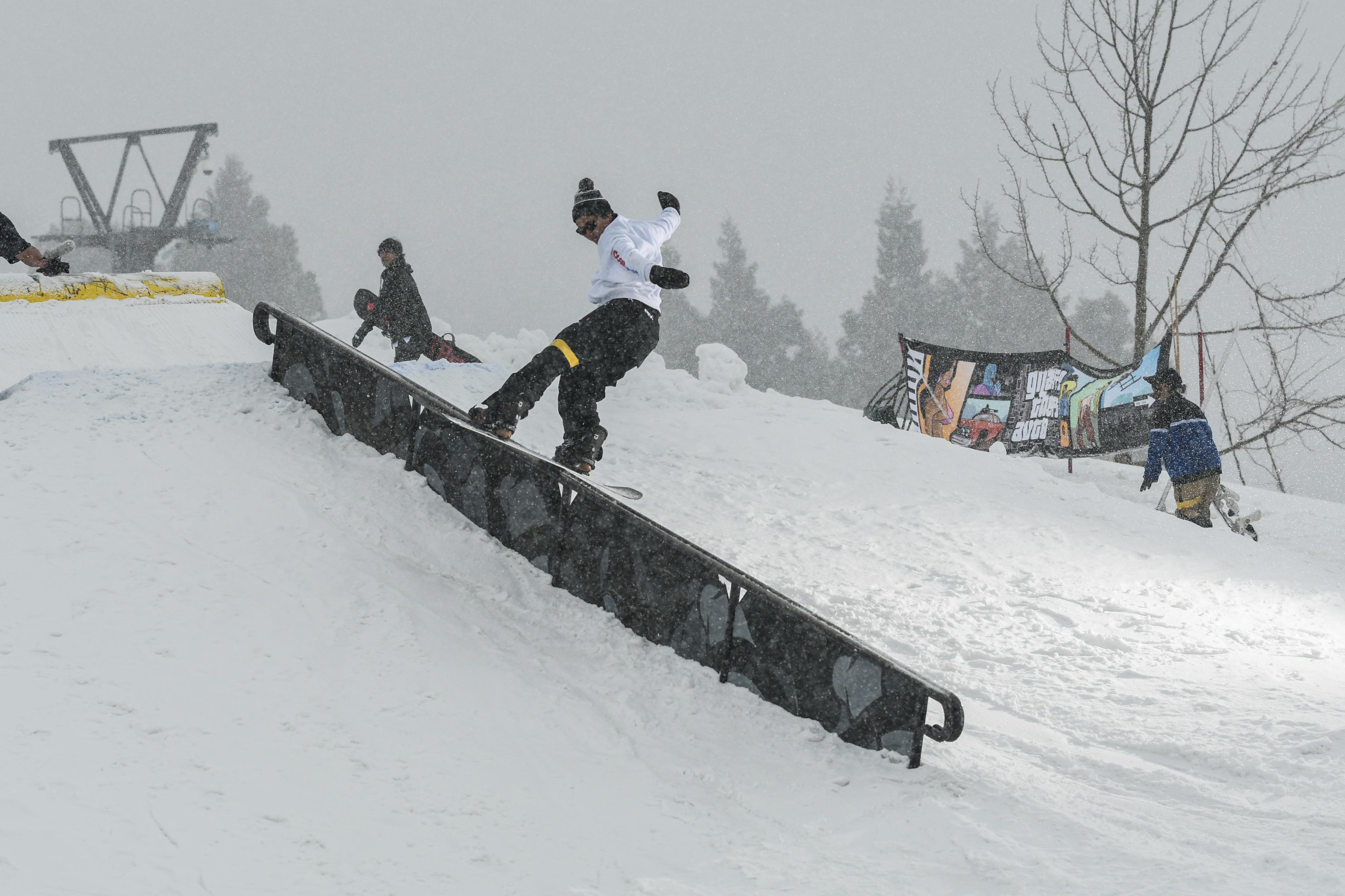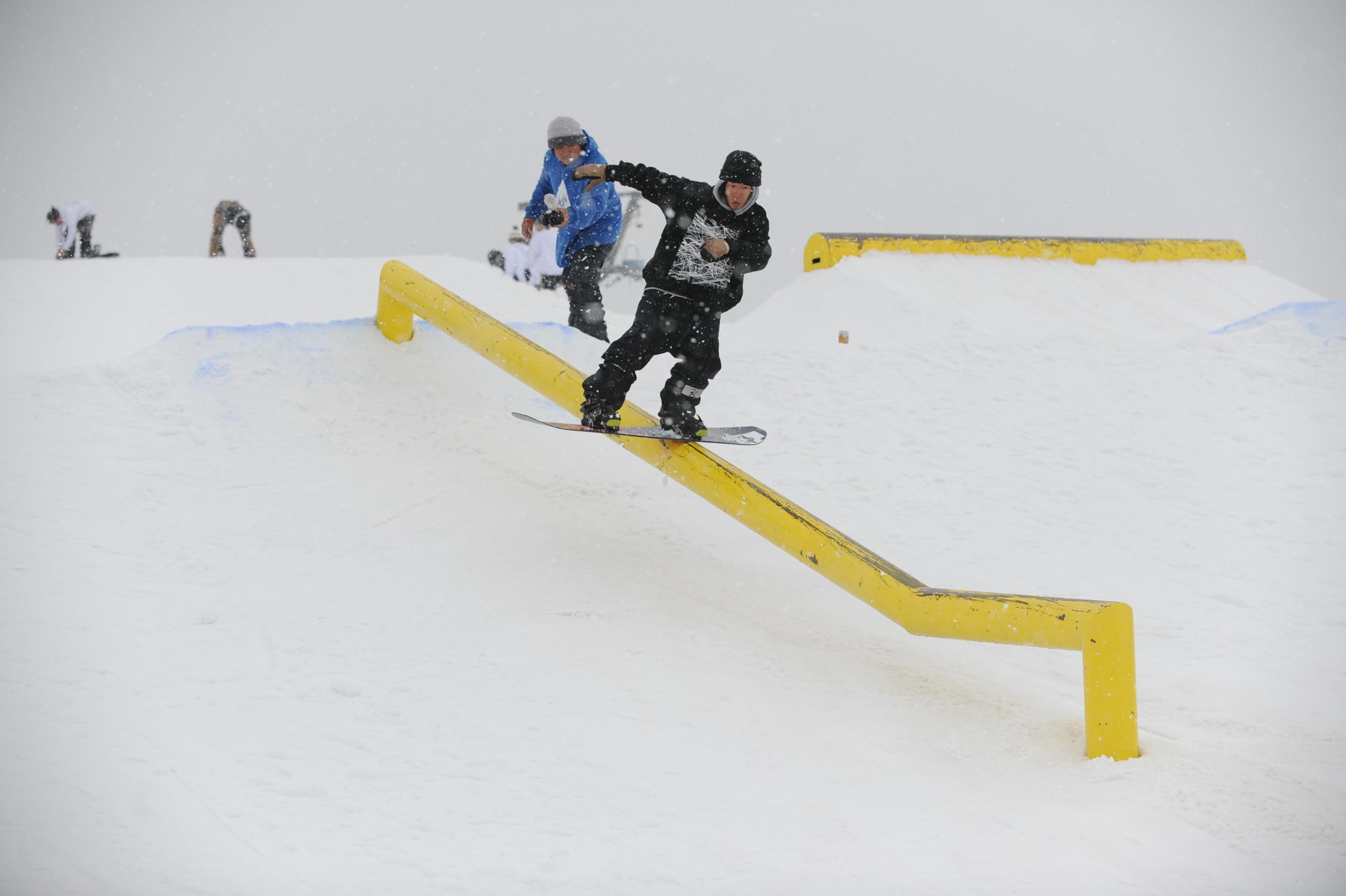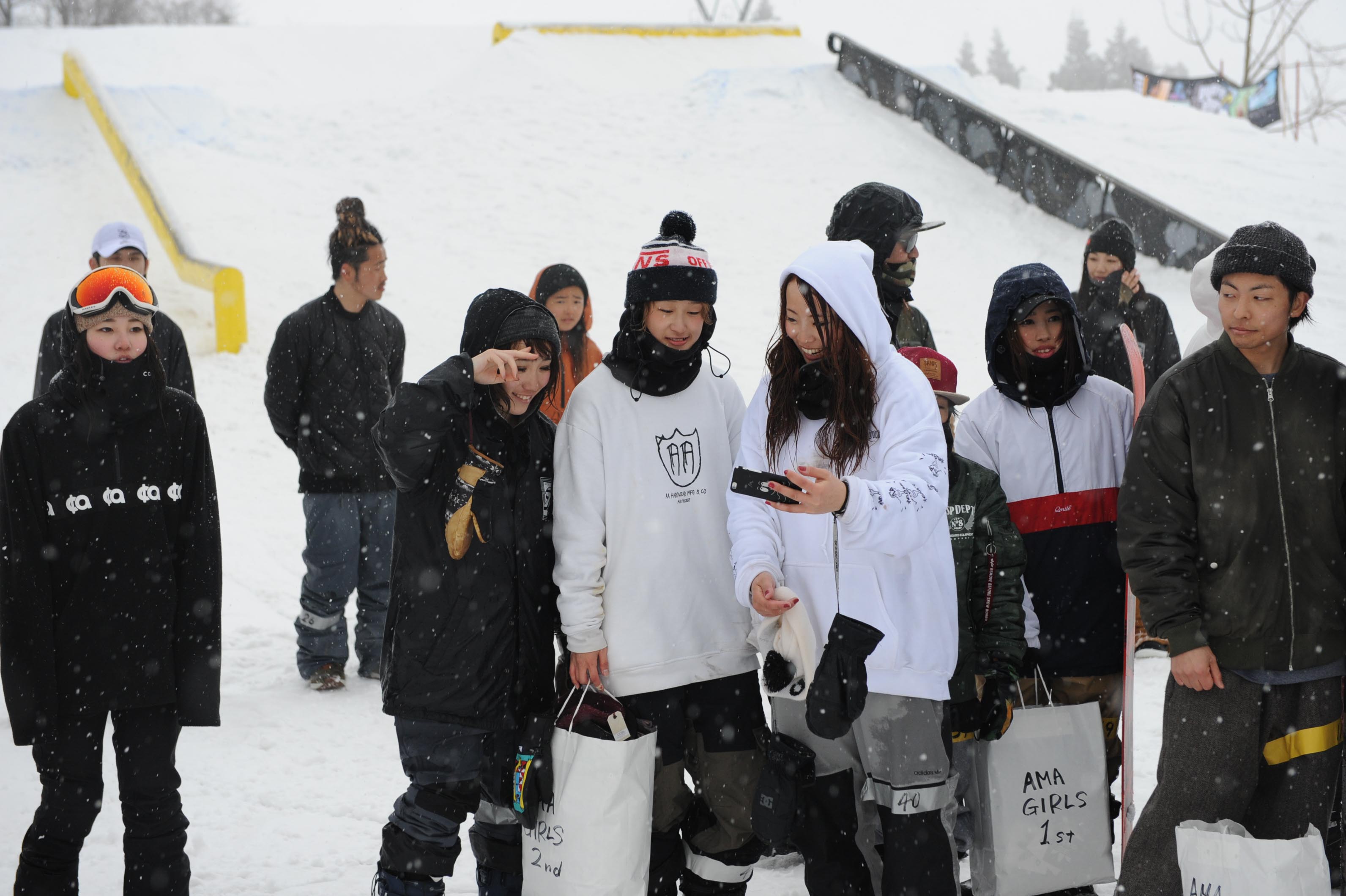 今年は板を走らせる為にアイテムの手前にパンピングできるように即席で雪を盛ったんですけど、それに苦戦してる人が多かったのかなと。あと、途中から雪が降って板が思うように走らなくて、予想以上に難しくなってしまった印象もありました。次回はそのあたりも考慮して、もっと楽しめるセクションにしていきたいと思ってます。