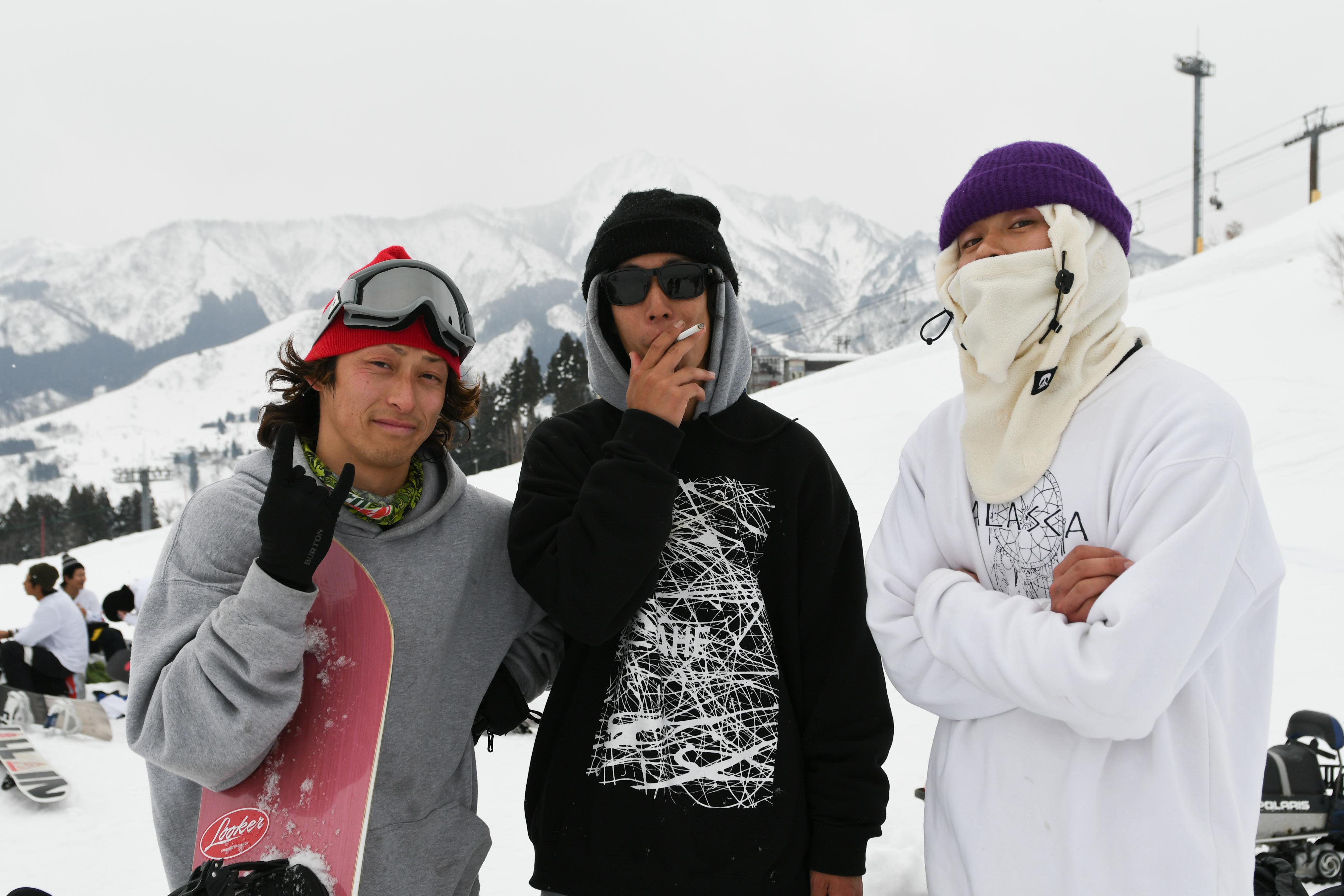 最先端のジブシーンを、ライダーだけでなく全国各地から集まるジバーたちで表現できる場として、このGANGSTA JIB SESSIONが企画された。このイベントの話を持ちかけてくれたDirtyPimp。戸田真人、小川凌稀、高尾翔馬、34、赤田祐弥らを主要メンバーとするこのクルーはもはや言うまでもなく、日本のストリート、ジブシーンを牽引しているライダーたちで構成されている集団だ。今シーズンのFREERUN本誌でも取り上げたDirtyPimpのヤングガン、小野崎 海琳、鈴木冬生、米野舜士もそのクルーに認められ、昨シーズンから映像の世界へ飛び込んでいった若きライダー。そんな彼らの中にもこのGANGSTA JIB SESSIONでの活躍が認められ、DirtyPimpの一員となったメンバーもいる。