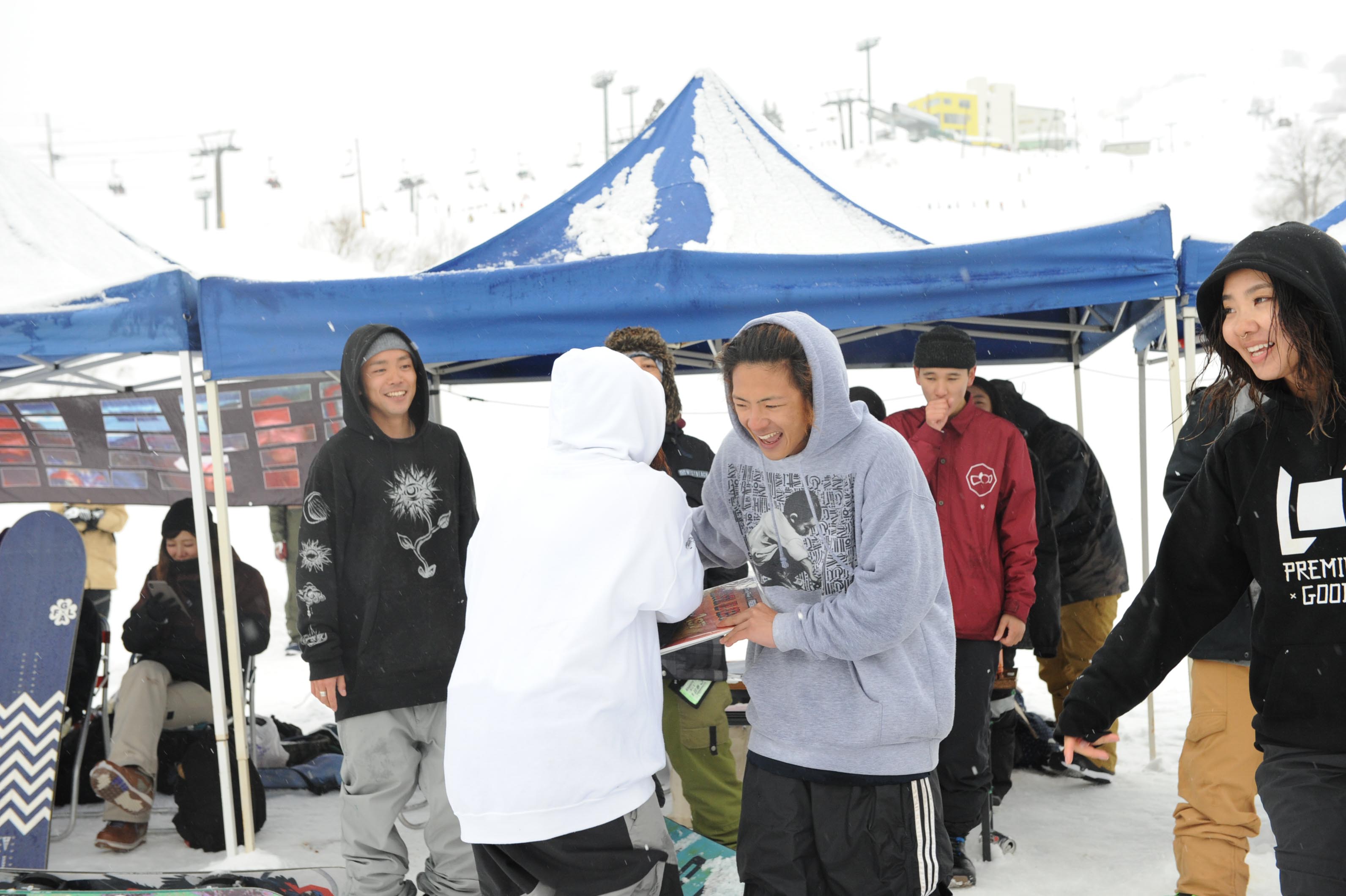 クルー同士でジャッジするのって、どうしても厳しく見ちゃうし中々難しいんですよね。それに、もし入賞者全員がDPクルーってなったりしたら、参加した人も面白くないんじゃないかと思って。だけどDPライダー達にも本気で滑ってほしかったから、オープンクラスでジャッジされない代わりにクルー内で「一番俺を興奮させた奴に!」って、賞金を用意しました。