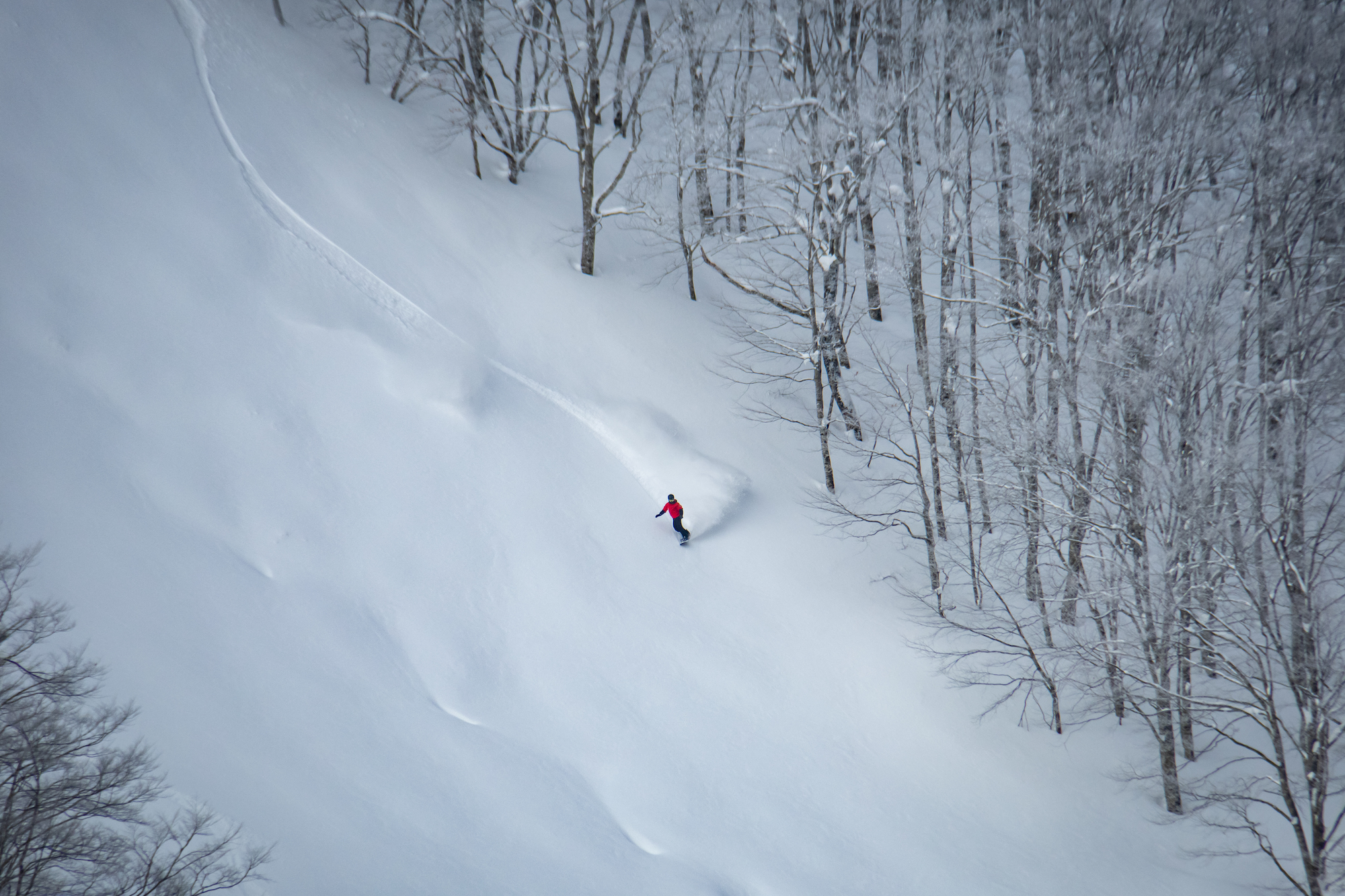 どんな動きでパウダーを攻めるか、あるいはどんな心持ちで自然と同調していくか。いずれにしても一般バーンではあじわえない──例えば身体が一気に浮き上がるようなあの感じをさらに上書きするような──体験ができる。