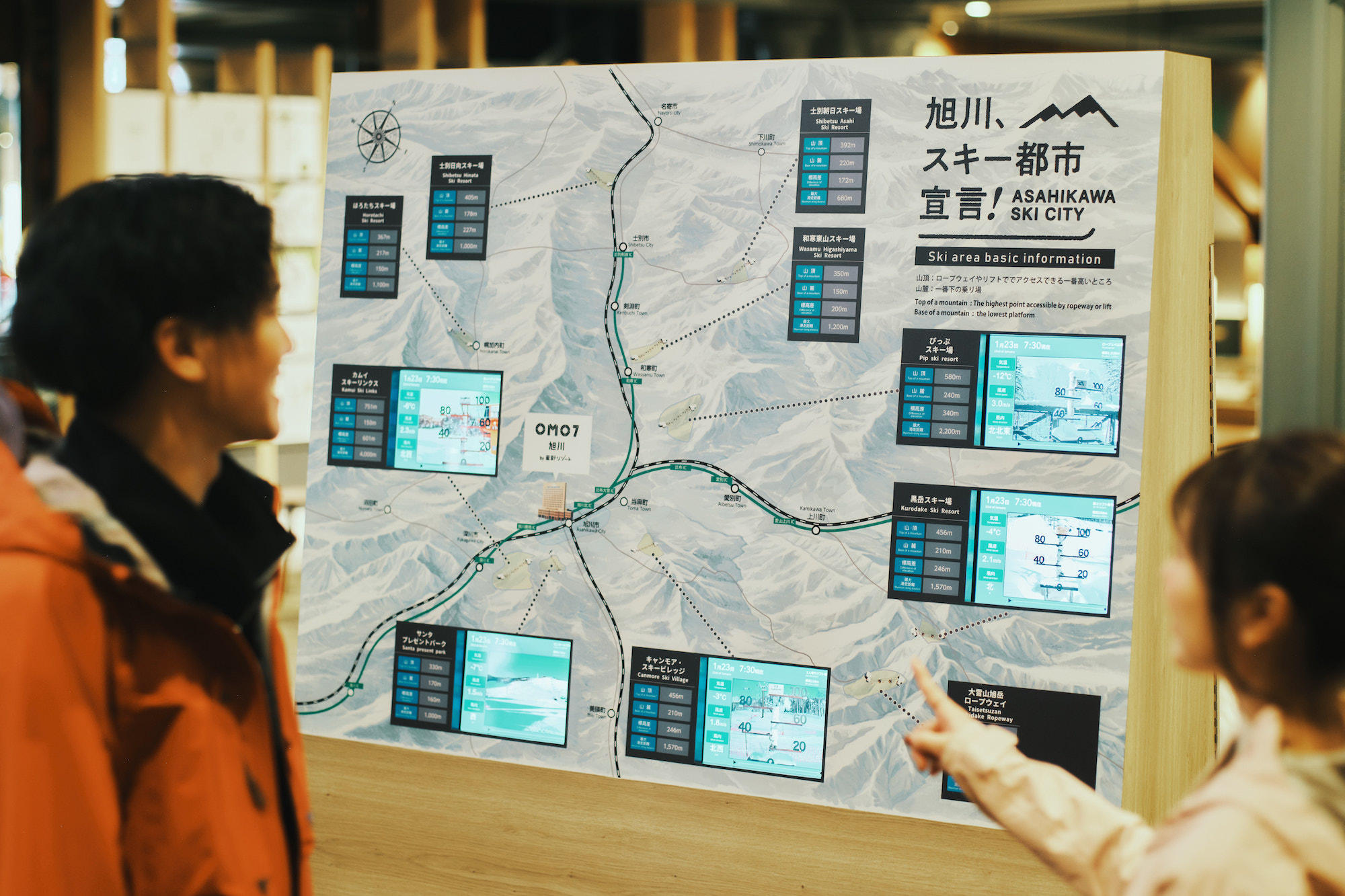 その日もっともパウダースノーを楽しめるスキー場はどこか? スノーボードをこよなく愛する『OMO7旭川』のスタッフが『パウダー情報士』となり、毎朝周辺各スキー場の『本日のパウダー情報』を発信してくれる。OMOベースには『スキー場ライブカメラ』も設置されているので、その精度はかなり高い。また今季も『カムイスキーリンクス』と中継をつなぐ(※)ので、天候や雪質など、コンディション全般を現地スタッフの生の声を通して知ることもできる。