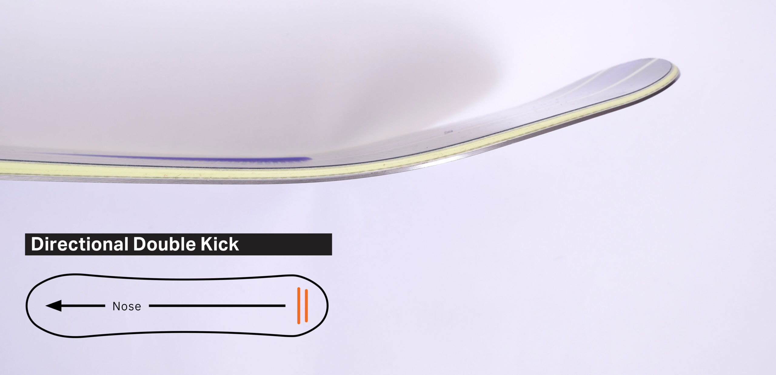キックをラウンド形状に立ち上げるのではなく、フラットが存在するように2段階のベンドで立ち上げるという特徴的な形状「Double Kick」。VIPERにおいてはDirectional Double Kickを採用。2段階で立ち上がったキックがテールの安定感を高め、深雪ではパワーを引き出し、後傾になりがちな着地でもしっかりとサポートするという性能を引き出している。