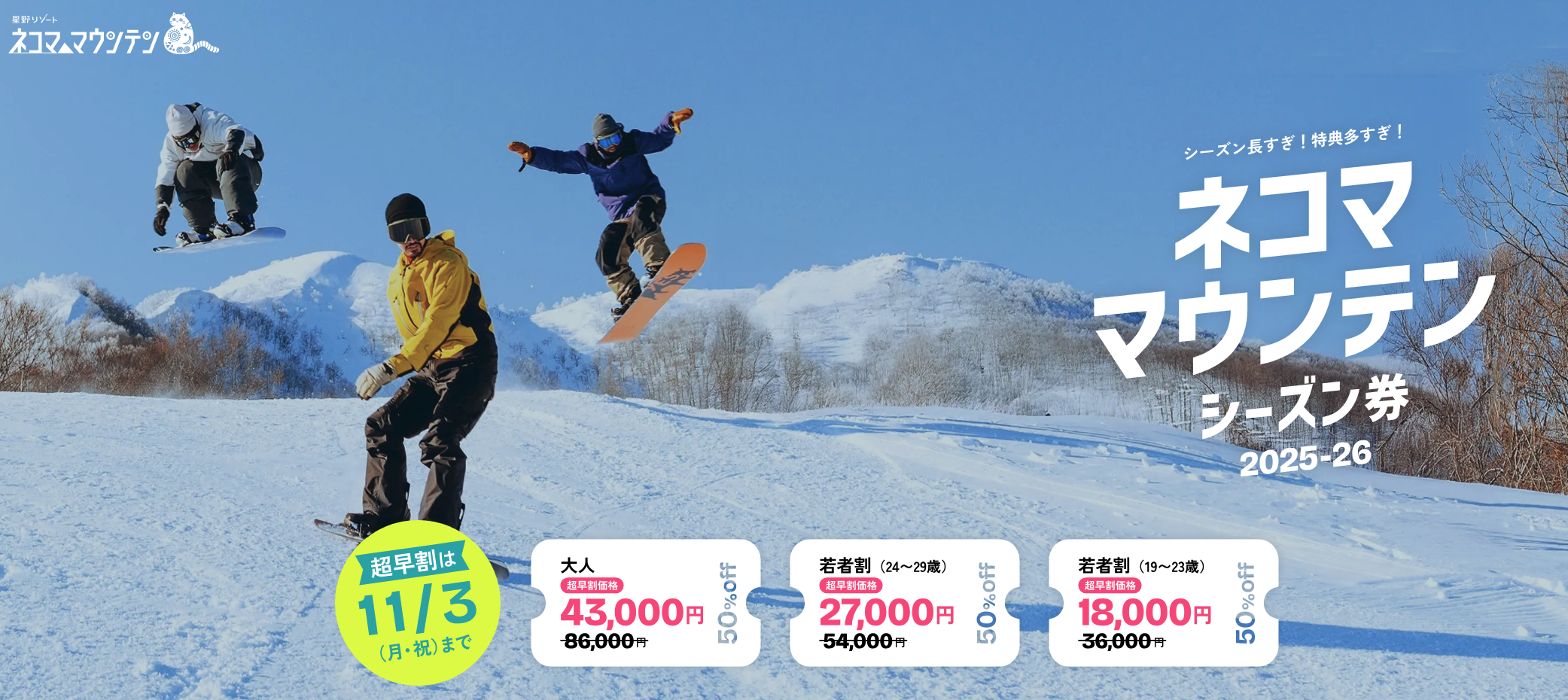 超早割期間なら半額!『ネコマ マウンテン 2025-26年 シーズン券』