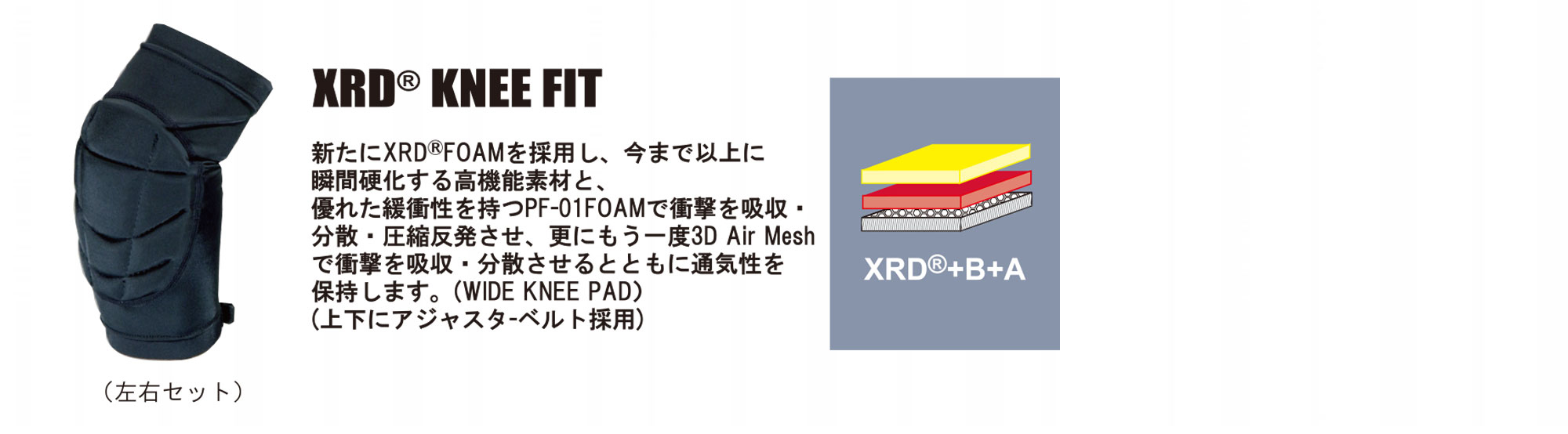 XRD素材が膝周りにしなやかにフィットしながら、衝撃時には瞬時に硬化。