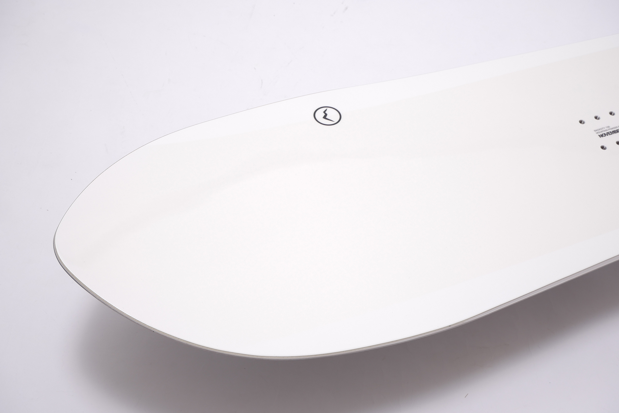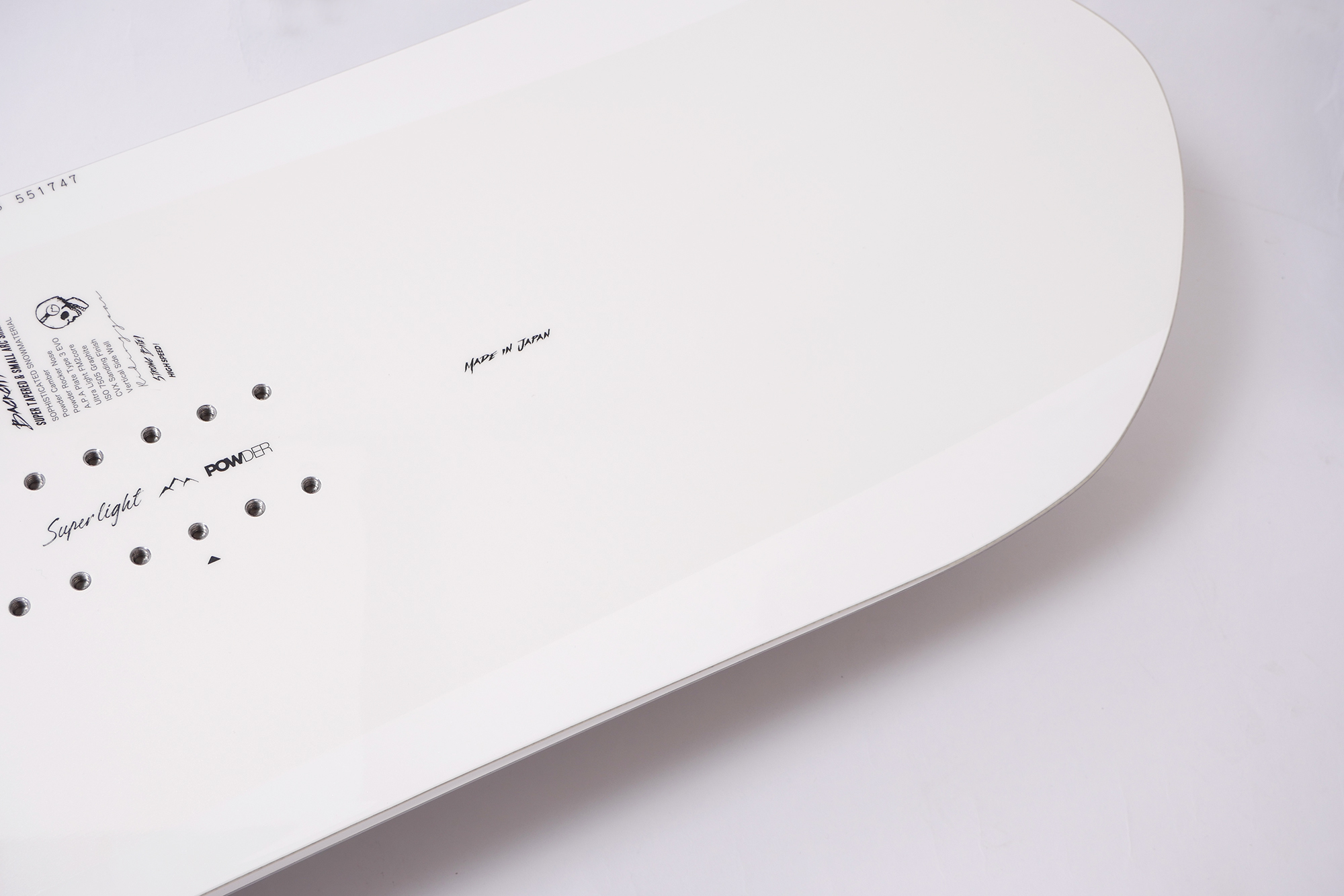 BACKCITYの今季モデルを象徴するのが、リファインされたロングノーズ形状だ。ノーズの長さをしっかり確保しながら、先端にかけてのシェイプを見直したことで、深いパウダーでもノーズが自然に浮き上がり、雪への食い込みを抑える設計になっている。これにより、減速しにくく、スピードを維持したままターンへとつなげられるようになった。さらに、ノーズ幅とテール幅の差を大きく取ったSUPER TAPERED SHAPEが、パウダーでの浮力と旋回性を両立させている。深雪でのコントロール性が向上し、ノーズからテールまでの動きが一段と滑らかになったことで、広い斜面でも自由度の高いラインを描けるボードへ仕上がっている。