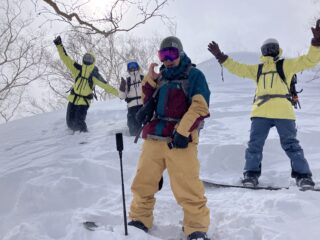 滑走直前、ガイドのシゲが計測した新雪の深さは…90センチ!