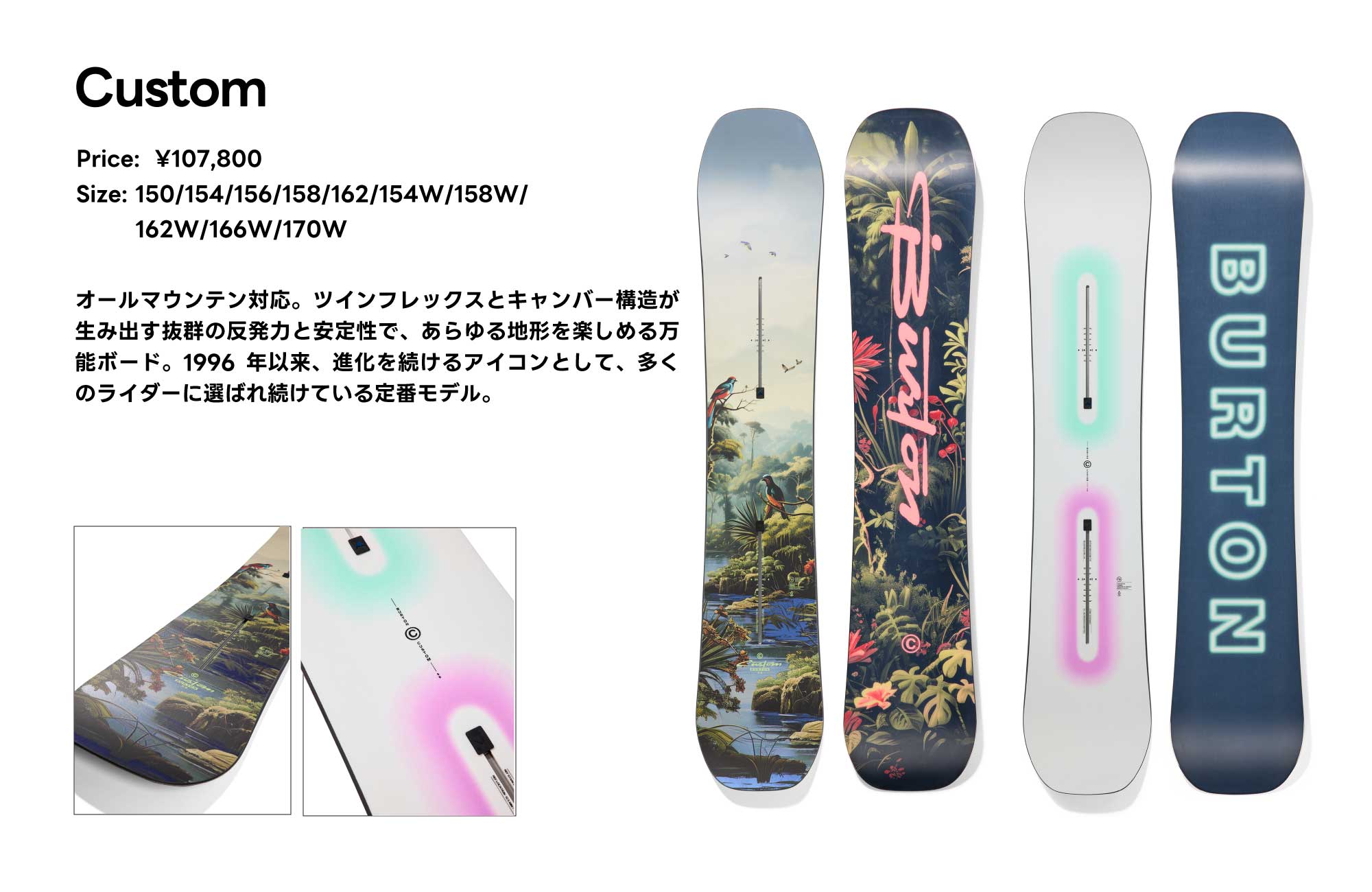 佐藤さんはまず、Burtonのラインナップの中で外せない存在としてCustomを挙げる。