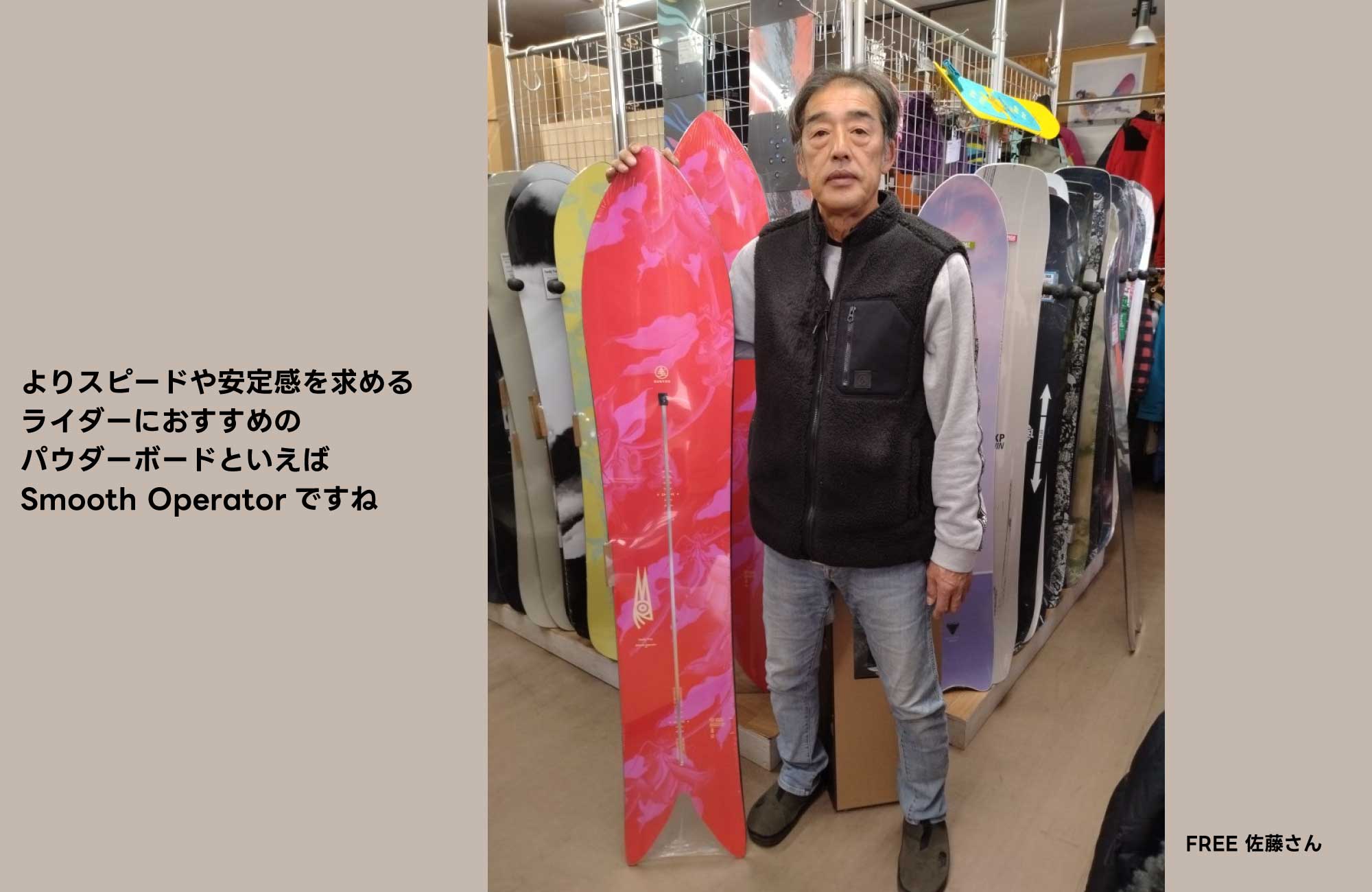 「まずはAlekesamでサーフ感覚を楽しみ、ゲレンデと両立させながらパウダーに慣れる。より高速での安定を求めるならSmooth Operator。北海道の雪を滑るなら、この2つがお薦めの選択です」