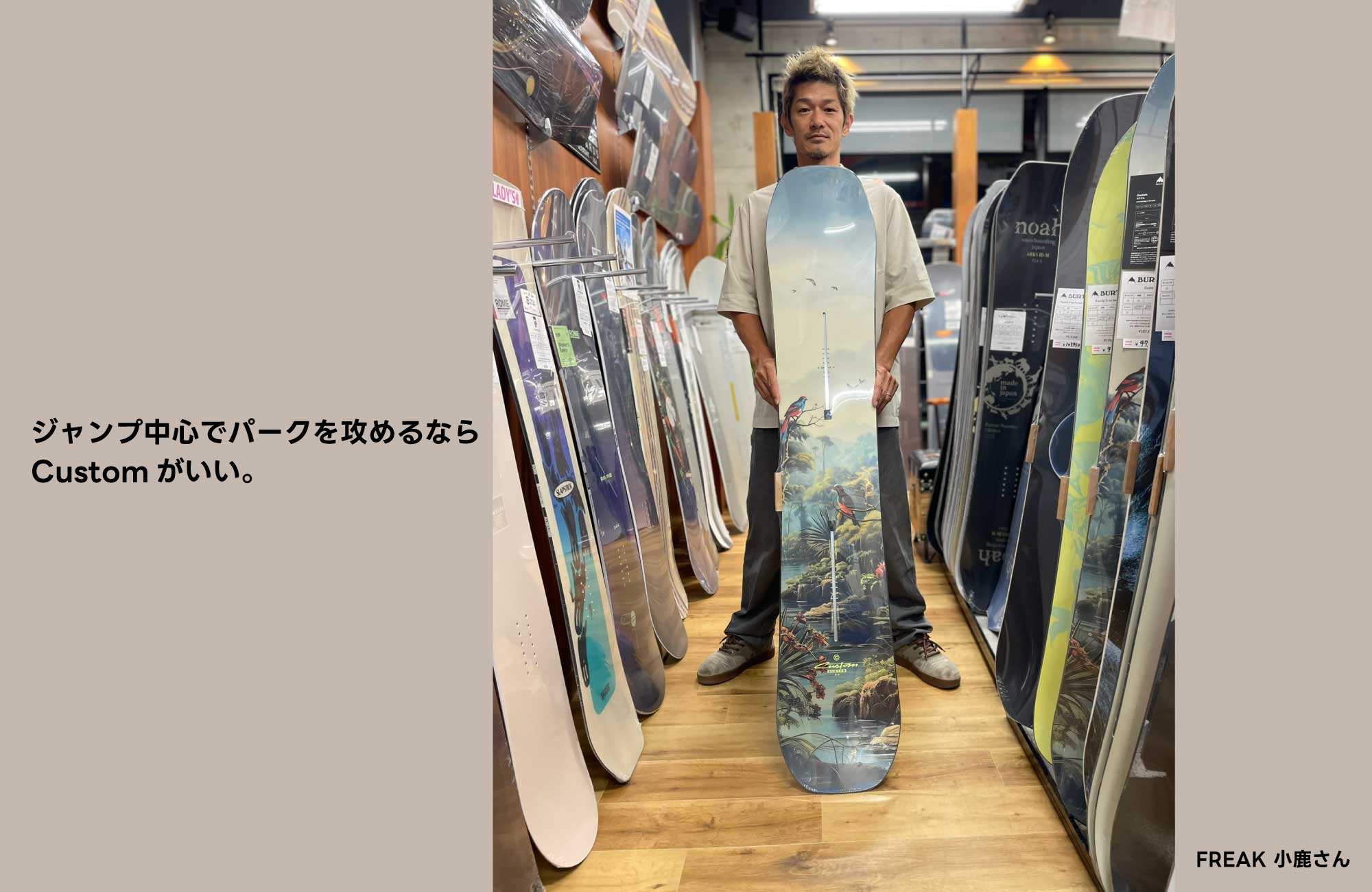 パークの中も結構カービング性能が求められる。ジャンプが入ってきたら、やっぱりカスタムのようなフリーライド性能がしっかりした板じゃないと安定しない」