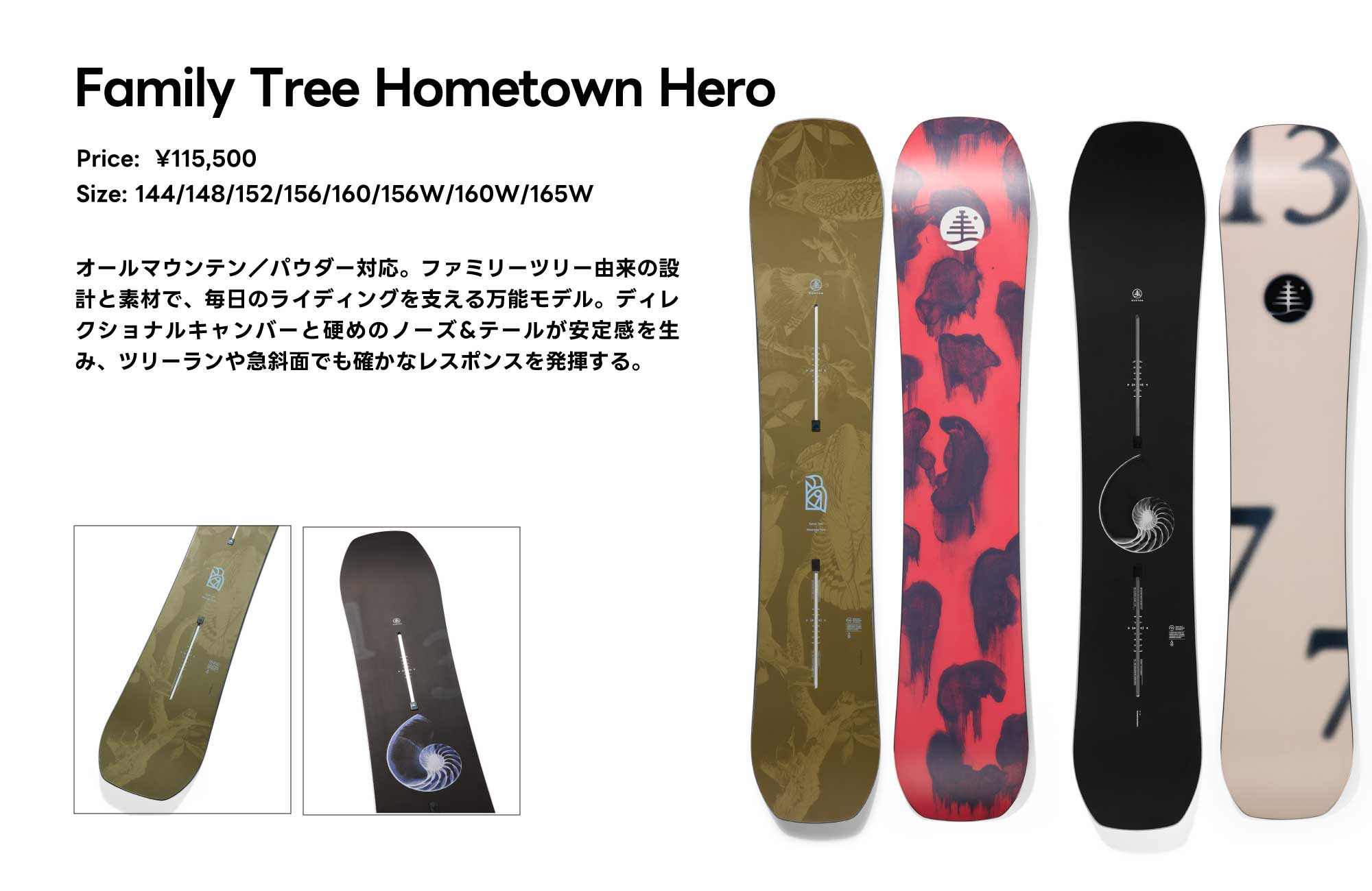 さらにバックカントリーや自己責任エリアを視野に入れるなら、Family Treeシリーズが候補になる。Hometown Heroのようにオールラウンドな性能を持つモデルや、よりディープパウダーに強いモデルまで揃い、岐阜エリアのゲレンデの多様なコンディションに対応できる。