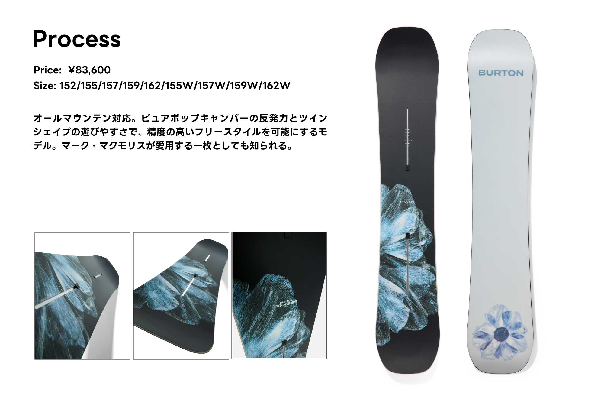 「Processも大会で使うライダーがいるぐらい性能が高いんです。扱いやすくて、しかもコスパがいいから、初中級のステップアップには最適」と小鹿さん。セットアップはCartelやGenesisといったバランス型バインディング、ブーツはRulerとの組み合わせが鉄板。「ルーラー×カーテルは王道中の王道。安心してターン練習ができるセットです」とアドバイスしてくれた。