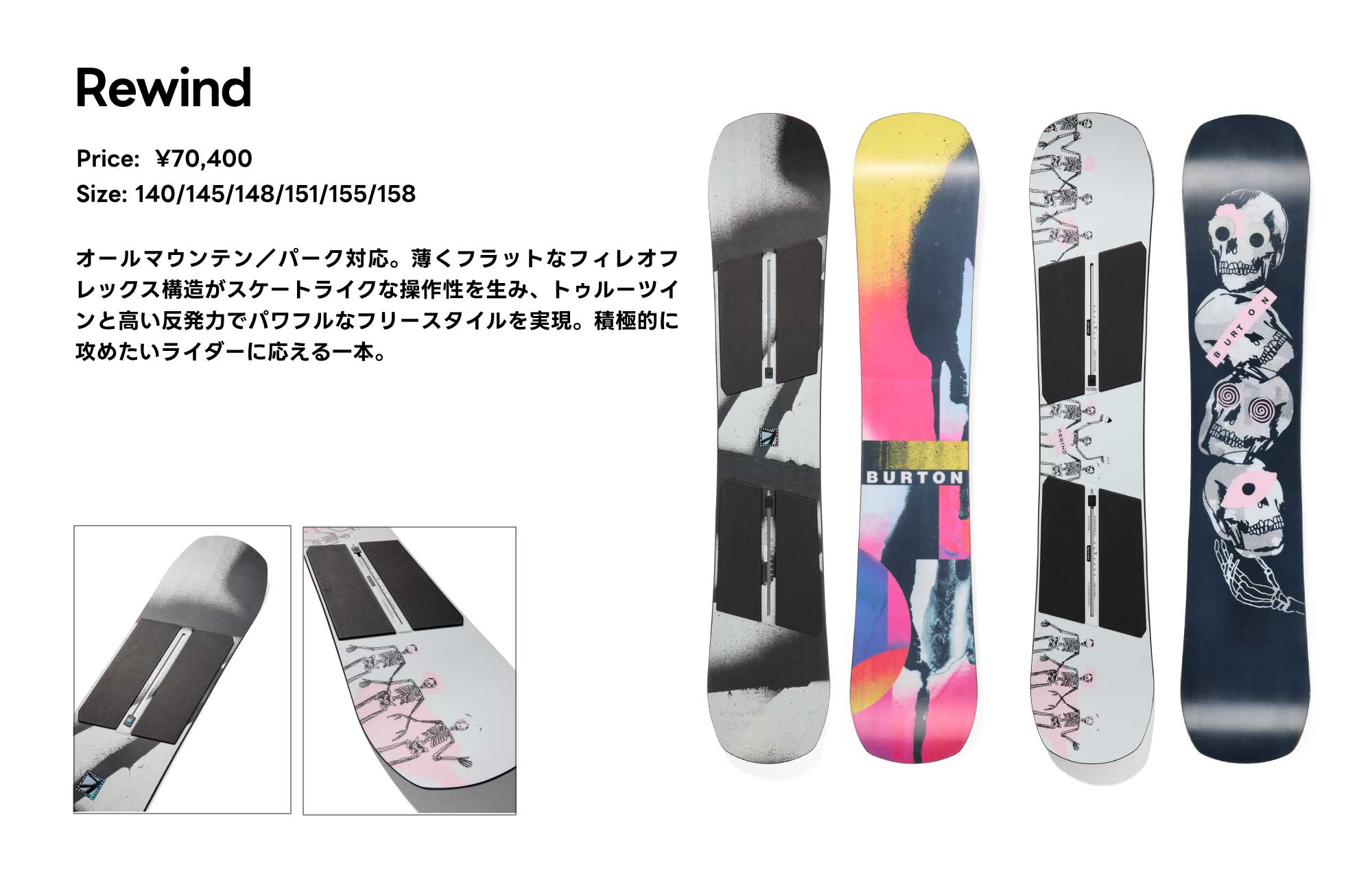 一方で、ジブやストリート的なセクションに挑戦したいライダーにはRewindを推す。
