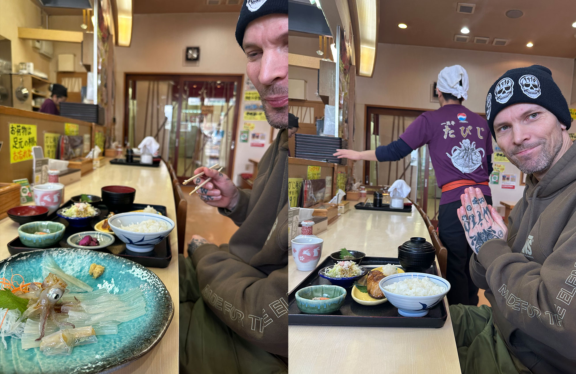 ヒロが連れて行ってくれたのは、函館駅前「駅二市場」にある「たびじ」という店。新鮮な魚介類を中心とした、伝統的な和朝食を提供するレストランだ。朝から海鮮、というのは正直なところ僕の文化圏では馴染みがない。だが、日本に来るたびに、少しずつそれを楽しめるようになってきた。