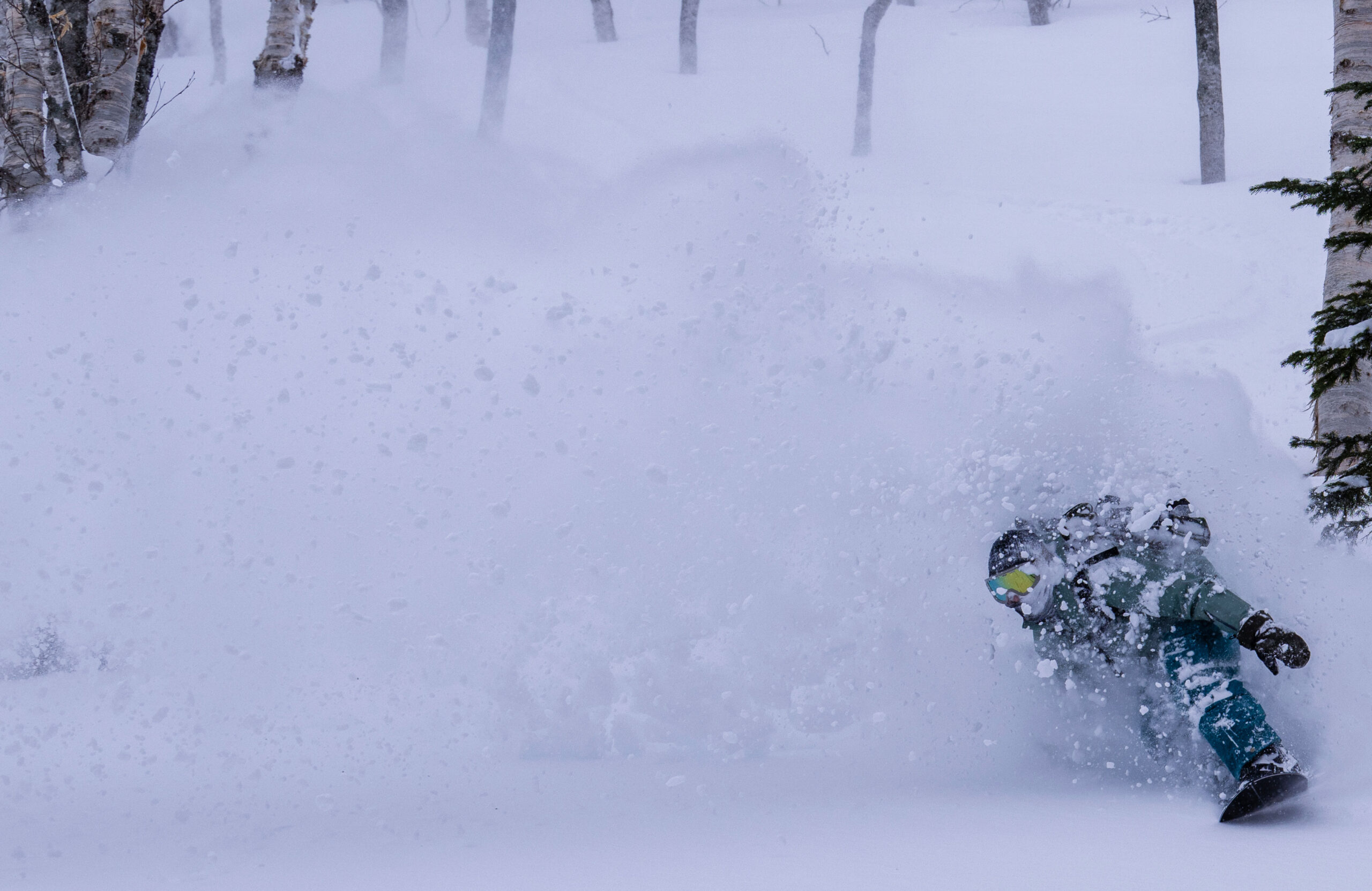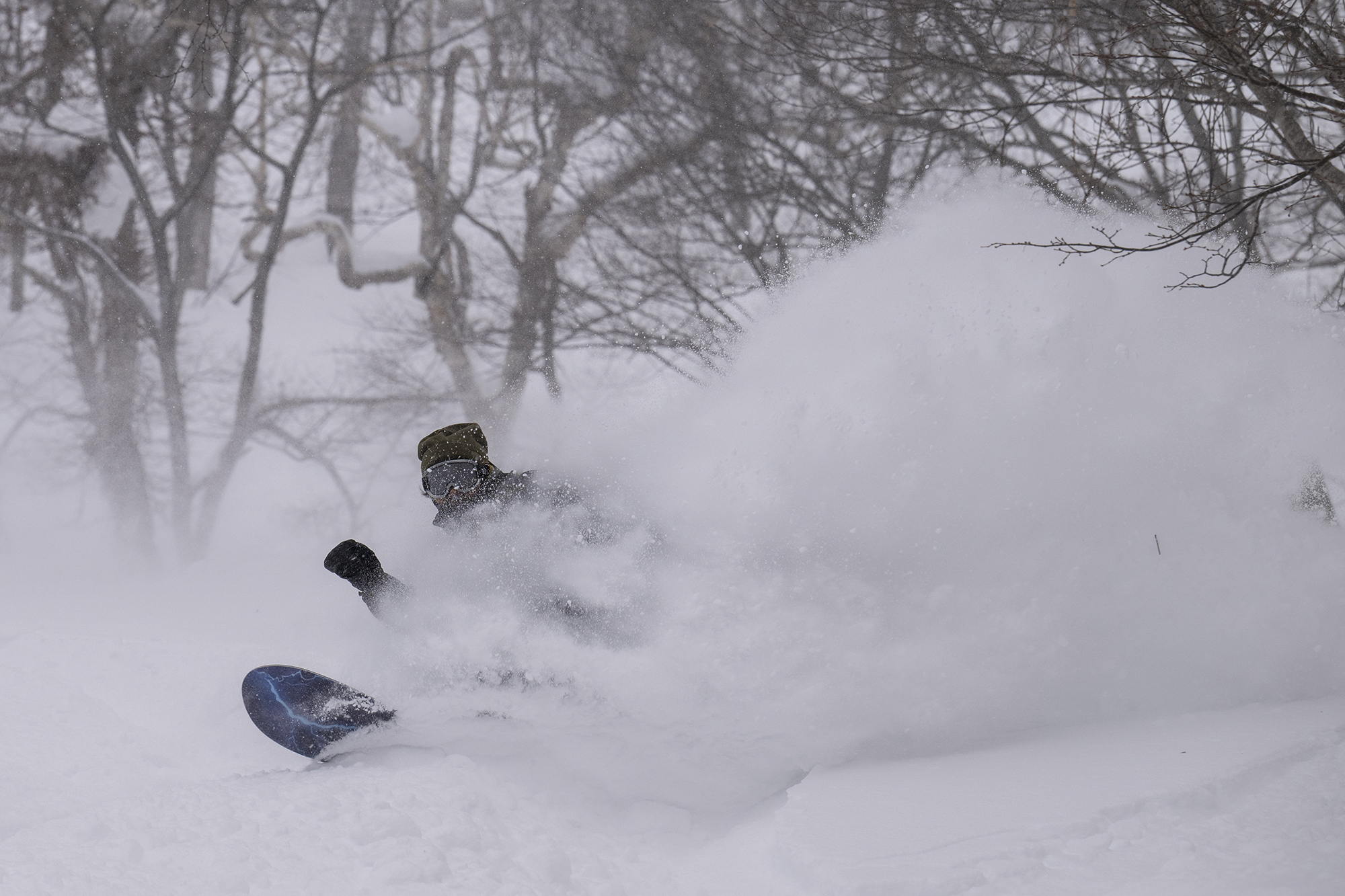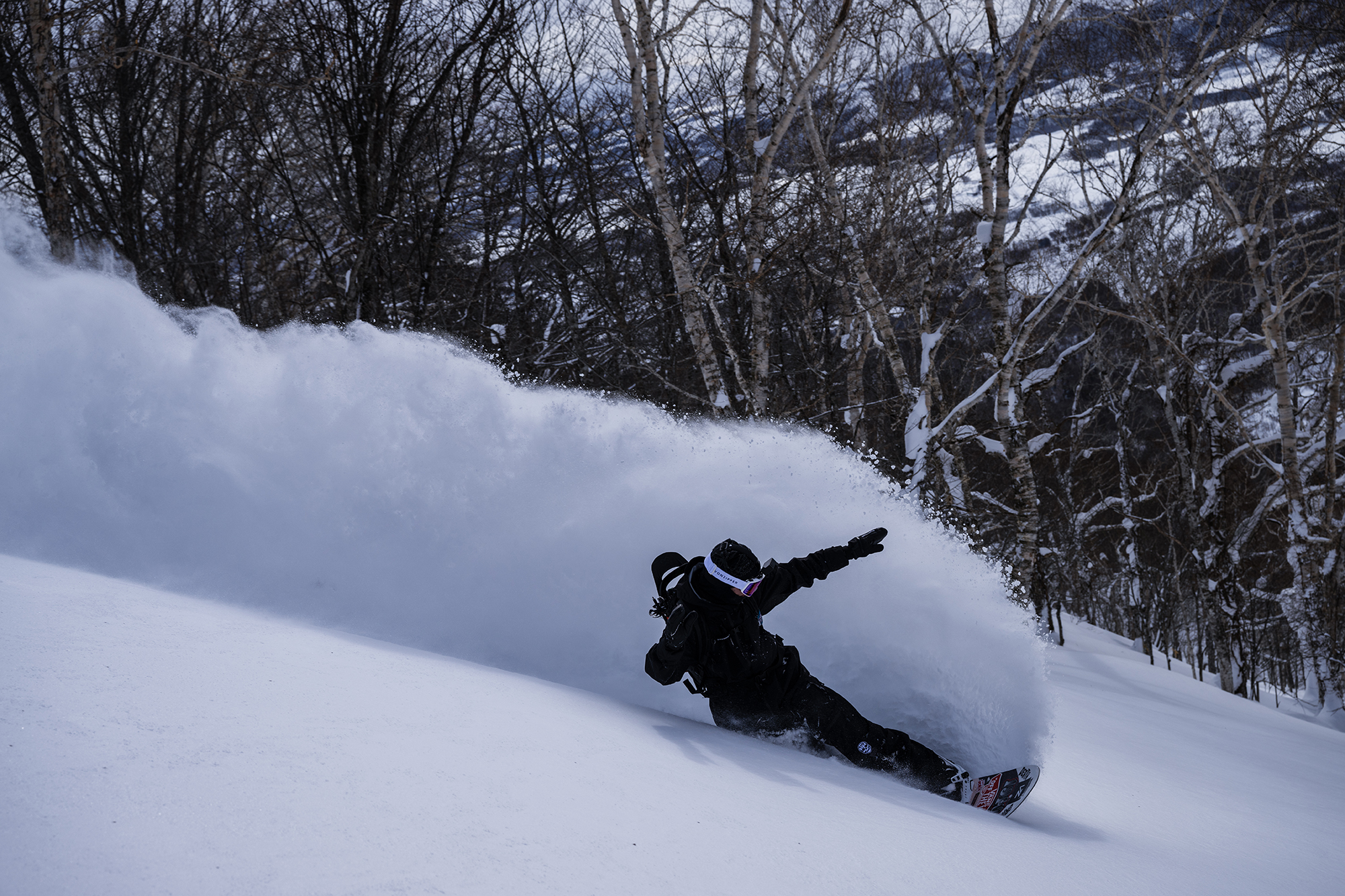 目的地はニセコ。途中、小さなスキーエリア「ピリカ」で、中井孝治、藤本広海とともにディープパウダーでのクルージングを楽しんだあと、ニセコでDEATH LABELの仲間たちと合流する。