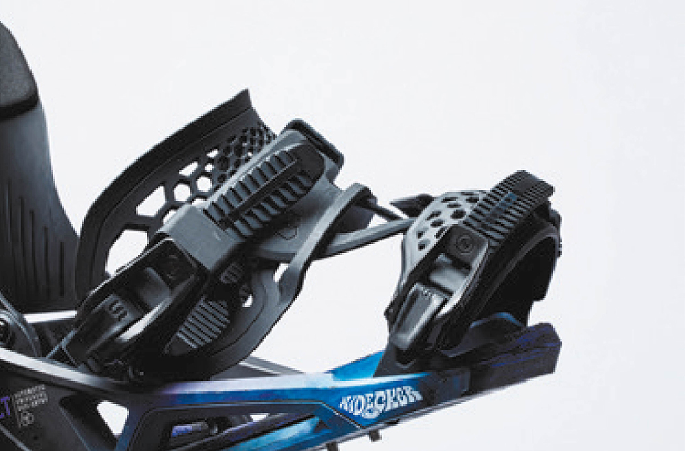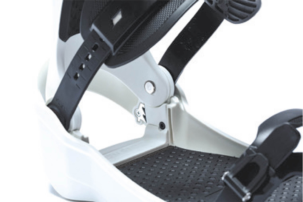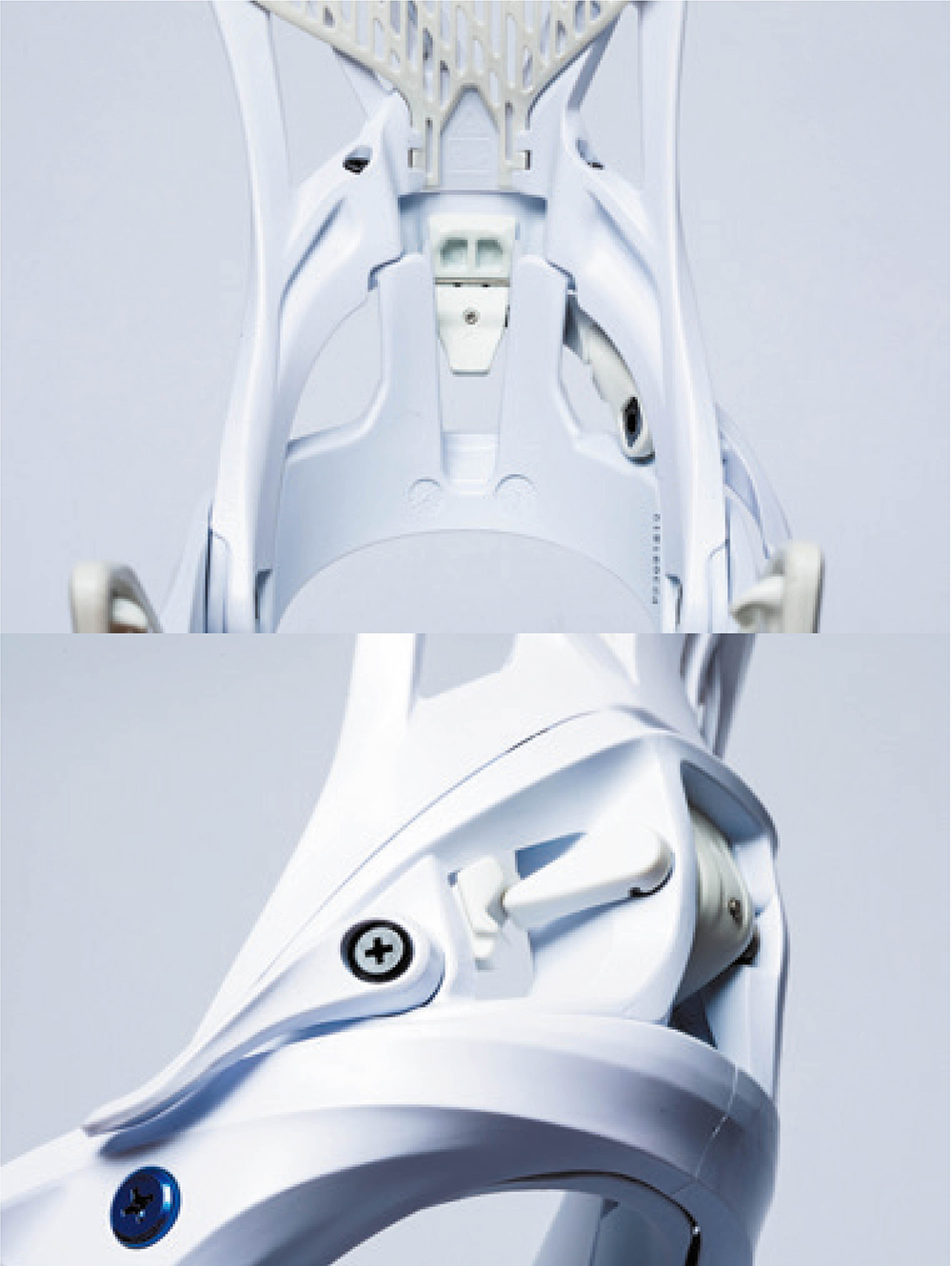 ブーツのソールに触れるパーツ、アンクルストラップ、ハイバック。これらが三位一体となった構造により、ブーツの形状に自然とフィットするため、とても高いホールド性を備え、またボードへのパワー伝達のロスも軽減している。