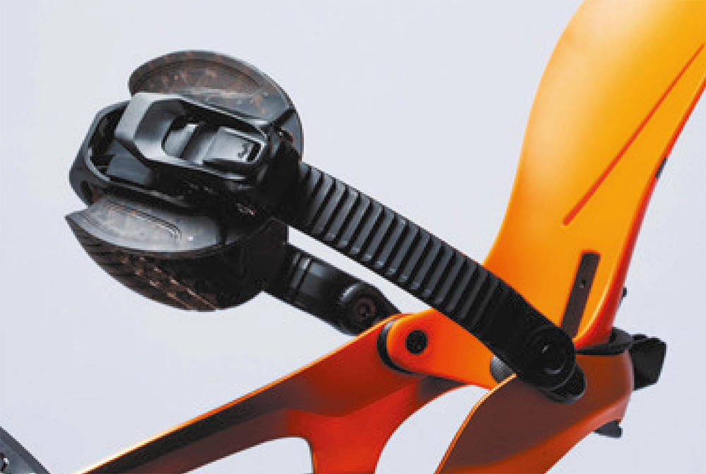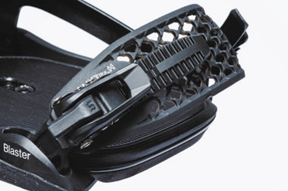 シンプルな設計ながら、洗練された外観と信頼性の高い構造を追求して開発されたヒールコネクション。一般的なバインディングのバックルの歯をベースに設計されており、完全にロックされるとブーツがガッチリとホールドされるため、ストラップタイプよりもパワー伝達のロスが少なくなる。