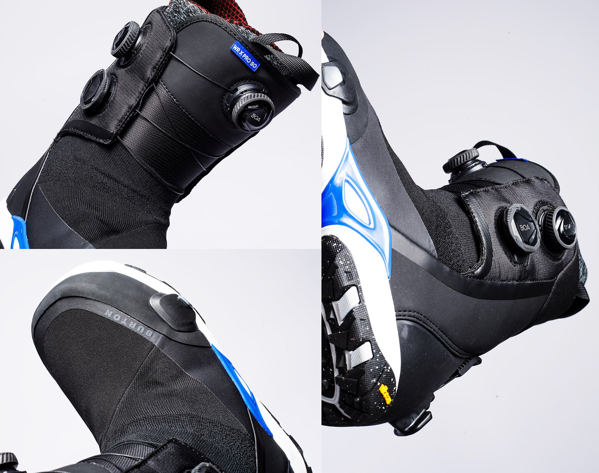 なかでも最上位グレードである「X PRO」は、まさにBURTONブーツテクノロジーの集大成だと言える。最新のBOAシステム「Triple Dial PerformFit Wrap」を搭載し、カフ・インステップ・フォアフットの3ゾーンを独立して微調整可能。これにより足全体を立体的かつ均一に包み込み、フィット感とレスポンスのバランスが格段に向上した。「一度履いたらすぐに分かる」足とブーツが一体化したかのようなフィット感は、これまでのSTEP ONブーツとは一線を画す。