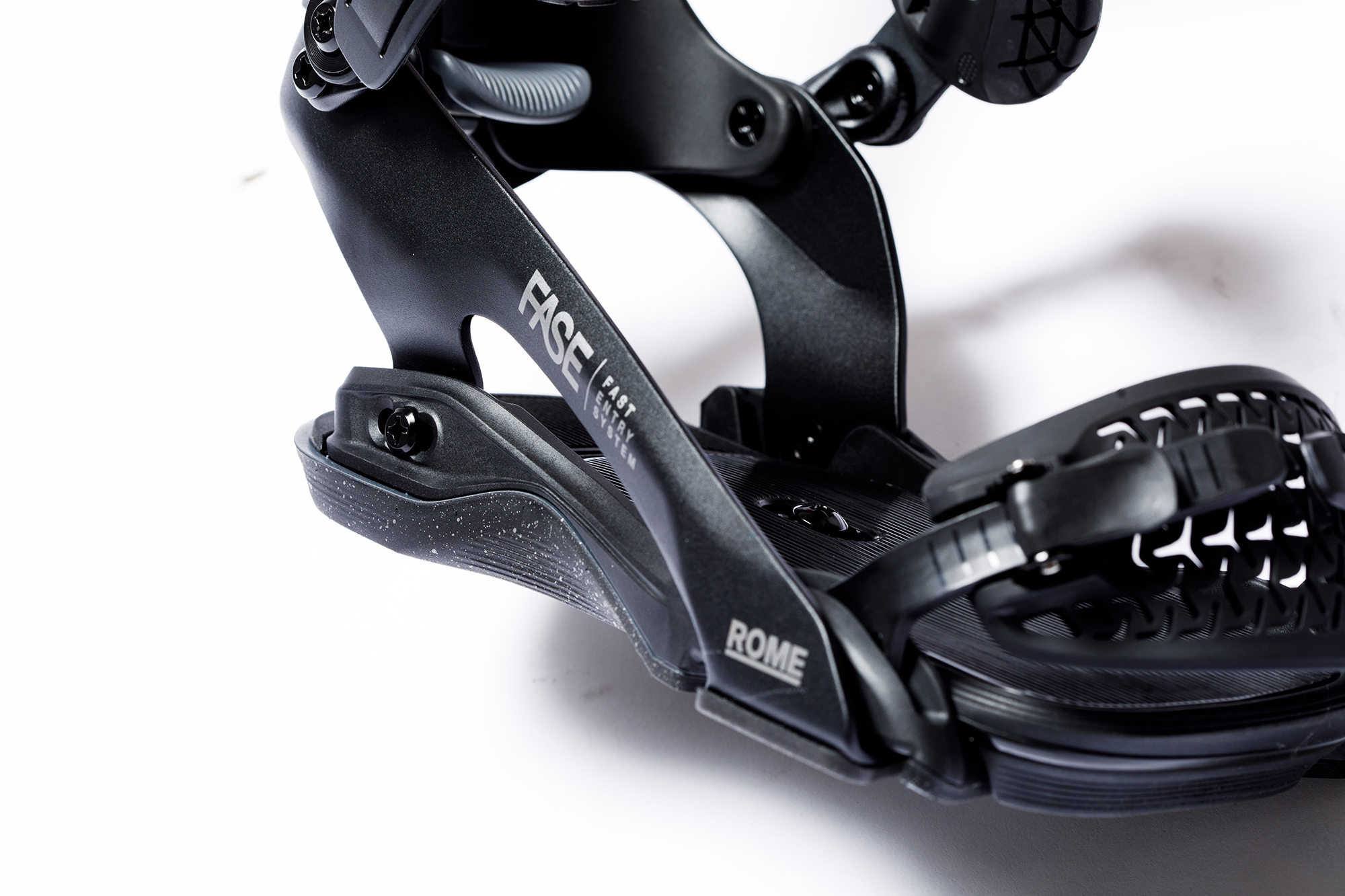 つまり、「KATANA AW FASE」は、単なる“ 速く脱着できる” だけではない。多彩な調整機構、どんなブーツでもしっかりホールドするAuxTech、ブーツサイズやボードに合わせて細かくカスタマイズできるセンターリングなど、滑り手のスタイルに寄り添いながら、一体感のあるパフォーマンスを引き出す、ROME の思想が詰まった次世代の2ストラップ・バインディングなのだ。