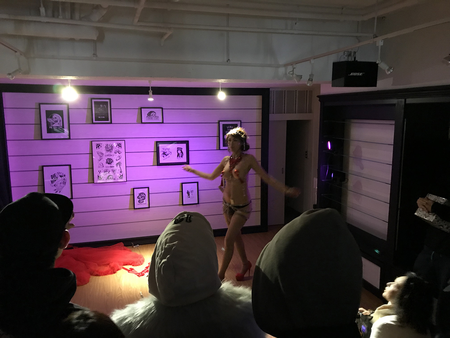 当日は、SKETCHY TANK本人も来場しアートワークの展示や、新作もチェックできるパーティが行われた。もちろんFREE BEERとTHE PARLOUR彫師によるFREE TATTOOも実施。また、今回はまさかのストリップショーもおこなわれ、チップを準備し会場は大盛り上がり!その時の模様を写真でお届けするので、SKETCHY TANKの世界観がよりイメージできるはず。