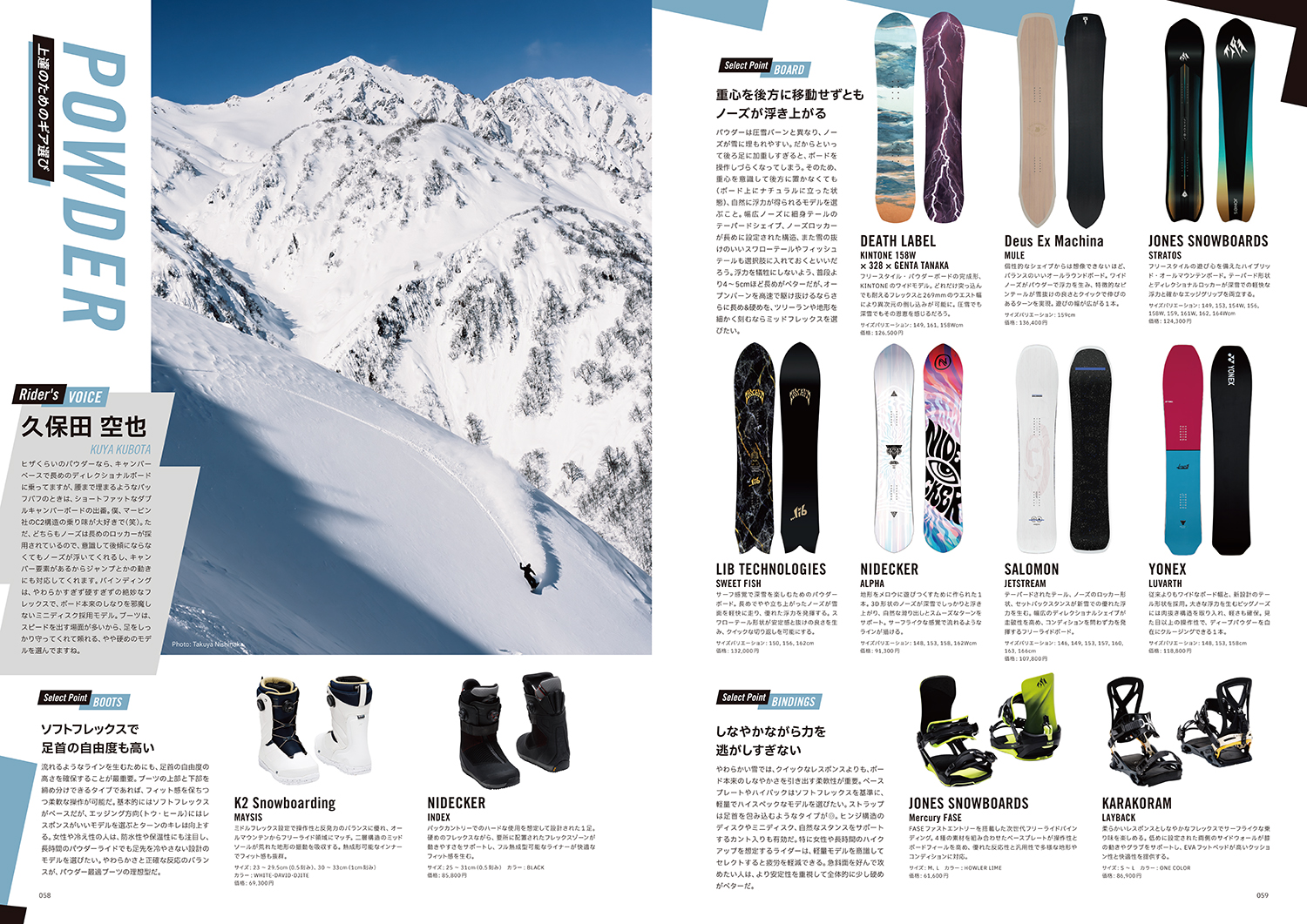 スノーボードを上達させる近道は「ギア選び」にある。5つのライディングスタイル別に、各シーンで活躍するプロライダーと、編集部からのギア選びのポイントをまとめました。そして、自己表現の一つとしてスノーボードの重要なファクターでもあるウエア選び。今シーズンの注目ウエアをテーマ別に集めました。このページを参考に、この冬ゲットすべきアイテムを探してください!