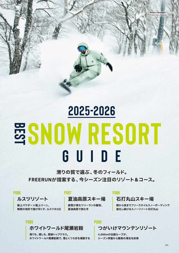 ▼滑りの質で選ぶ、冬のフィールド「BEST SNOW RESORT GUIDE」。