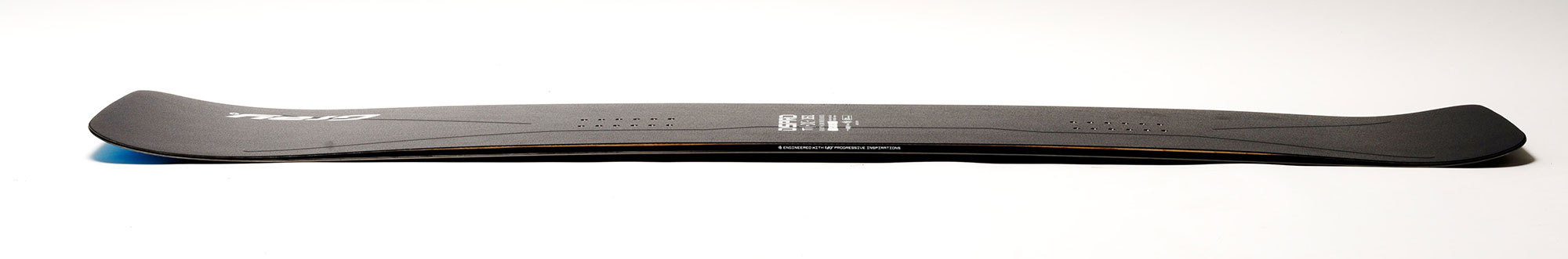 特筆すべきは、新開発の「Newバリオキャンバー」と「3Dサイドカット」の組み合わせだ。ターン導入ではしなやかにボードがたわみ、エッジがしっかりと雪面を捉える。そこから抜けへ向けては、余計な引っかかりを抑えながらも、蓄えた力を推進力へと変換。結果として、ひとつひとつのターンが滑らかにつながり、ライン全体がリズムよく流れていく。さらに、緩やかなサイドカットとワイドなウエスト幅により、深くボードを立て込んでも過剰に回りすぎず、スピードを殺さない精密なターン軌道を描けるようになっている。