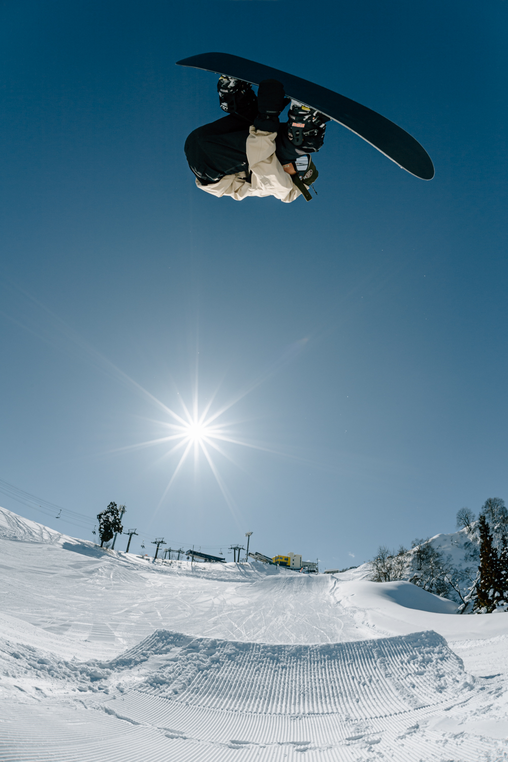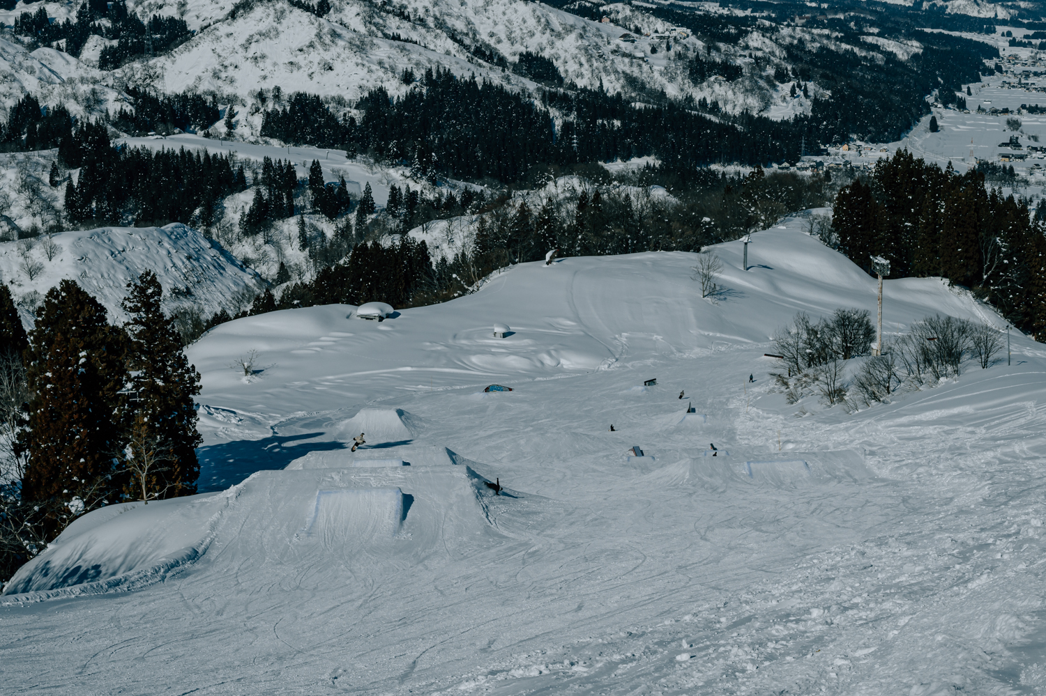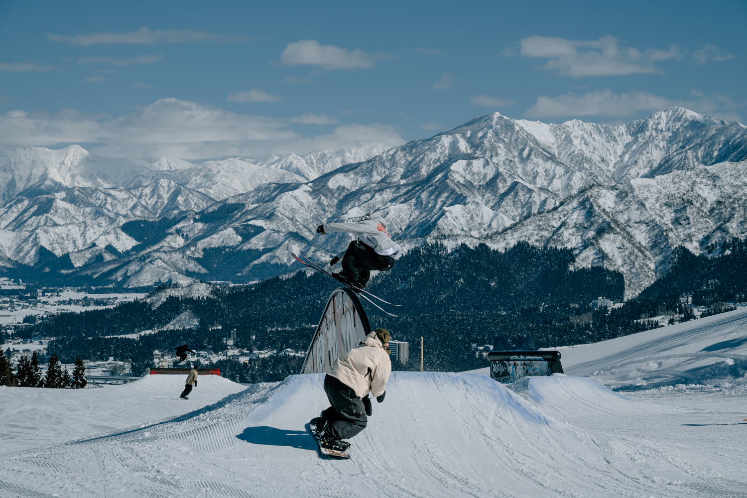 ジャンプやジブを攻める王道ラインを行くもよし、アイテムの起伏を活かしてラインを繋ぐもよし。ゲレンデ内の地形同様に、パークも無数の遊び方が存在する。だからこそ、石打のパークには「正解のライン」がない。ジャンプを飛ばなくてもいいし、地形だけを繋いでもいい。その日の雪、その日の気分で遊び方を変えられる設計になっているからだ。