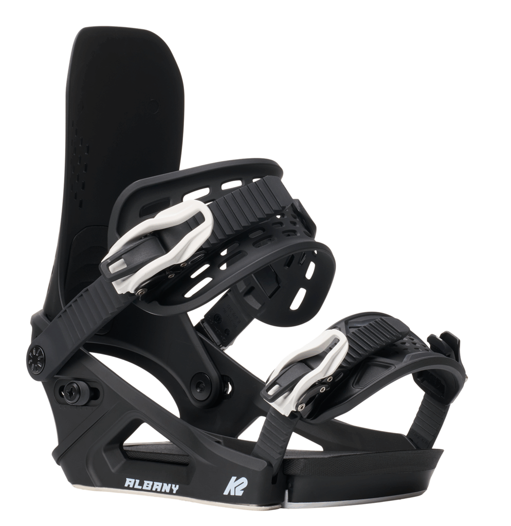 亜耶はバインディングにはALBANYを選択した。このモデルはミッドフレックスのオールマウンテンモデルで、上位モデルのPATHやNETWORKとの中間的な硬さを持つ。