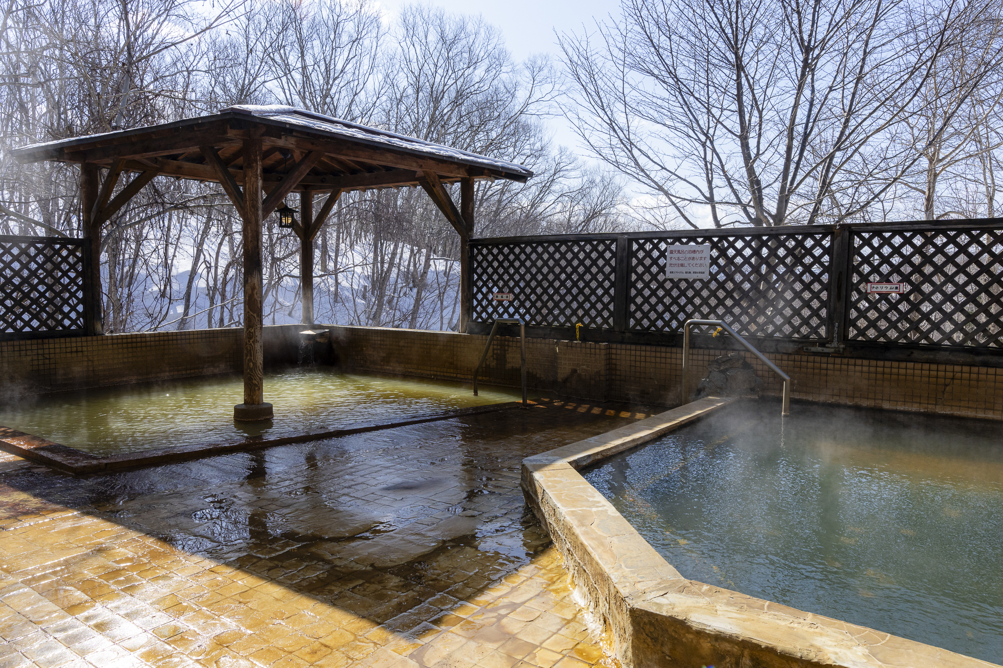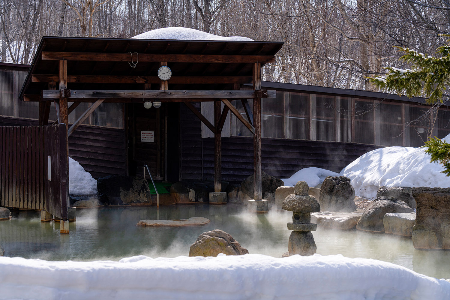 この宿の最大の魅力は、なんといっても温泉。自家源泉の2種類の源泉かけ流し湯が惜しみなく注がれる浴場は、男女別の内湯に加え、ニセコ昆布温泉郷最大級の広さを誇る混浴露天風呂を完備。混浴利用の際は湯浴み着を無料で借りることができ、カップルや家族、友人同士で一緒に入浴を楽しめるのも嬉しいポイントだ。ガッツリとパウダーを滑った後、雪景色を眺めながら湯に浸かる時間は、まさに至福のひととき。