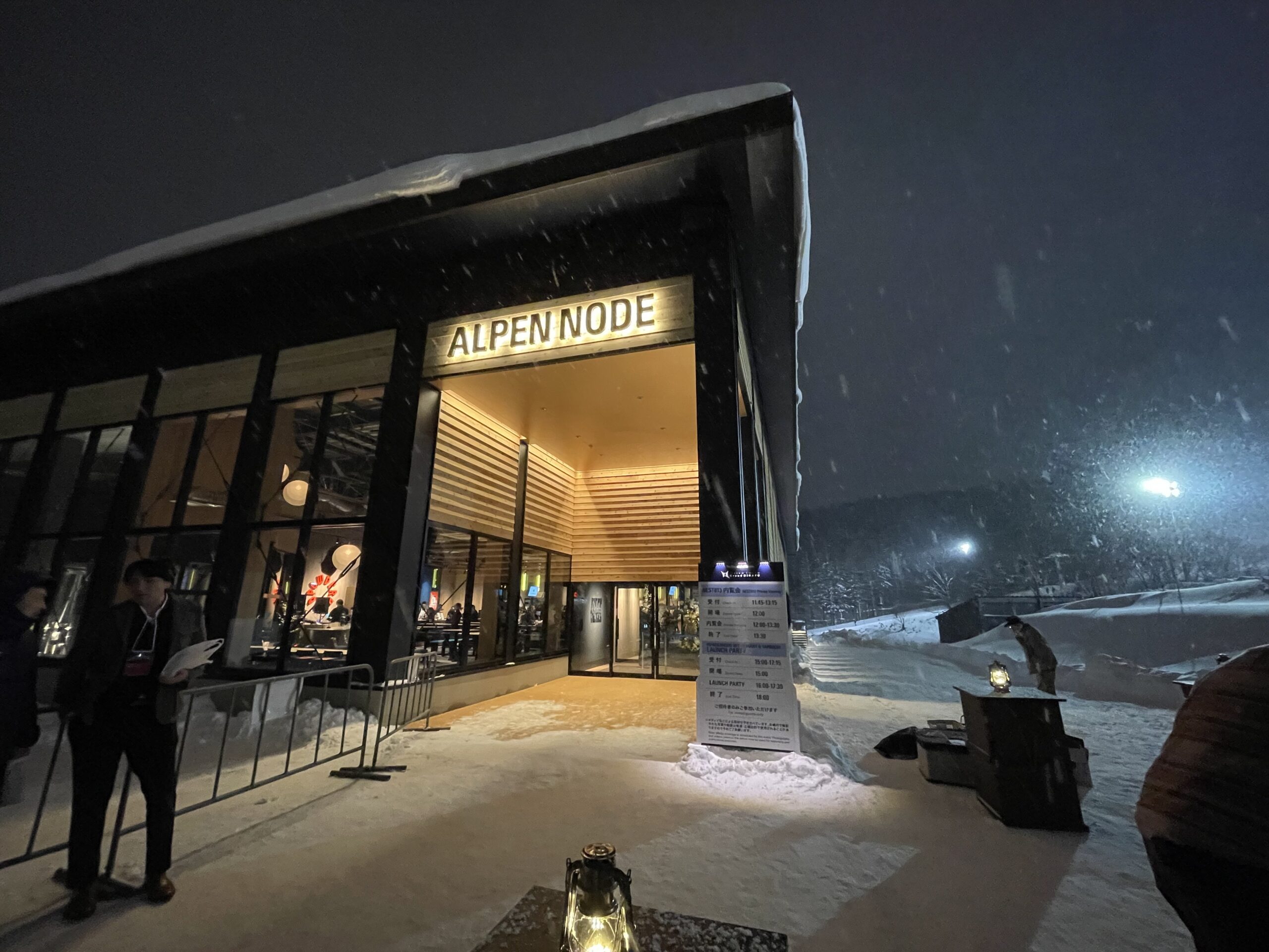 もうひとつの大きなトピックスが、エースゴンドラ山麓至近に新設されたオールシーズン型の体験ベース施設「ALPEN NODE」だ。2023年3月に閉館したホテルニセコアルペン跡地の一部を利活用して暫定整備されたこの施設は、“NODE=結び目・集合点”という名の通り、過去と未来、山と街、ゲスト同士、そして季節をシームレスにつなぐ賑わいの拠点として誕生。