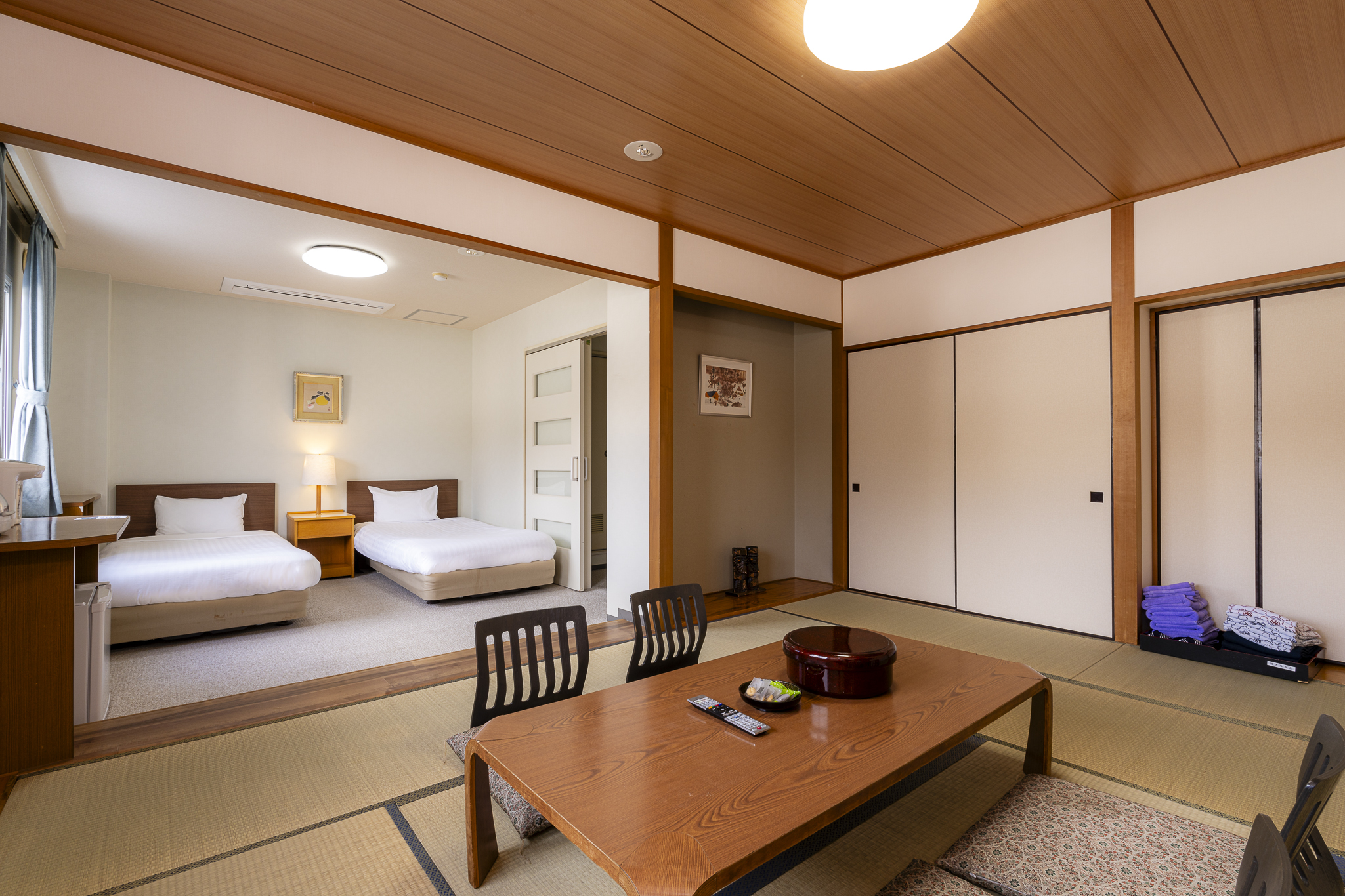 客室はモダンテイストの洋室をはじめ、畳敷きの和室、和洋室など多彩なタイプが用意されている。2名から最大10名まで対応でき、カップル、仲間同士、ファミリーまで幅広いニーズに応えてくれる。