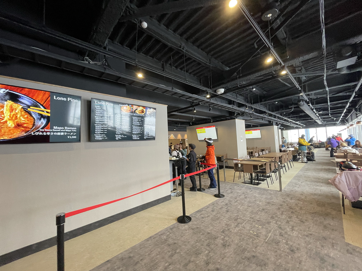 午前中にガッツリ滑ったあとは、今シーズン全面リニューアルした「イーストMt.」のセンターステーション「ローンパイン」へ。特に人気のメニュー「麻婆ラーメン」で腹ごしらえを済ませ、心身ともに満たされた。