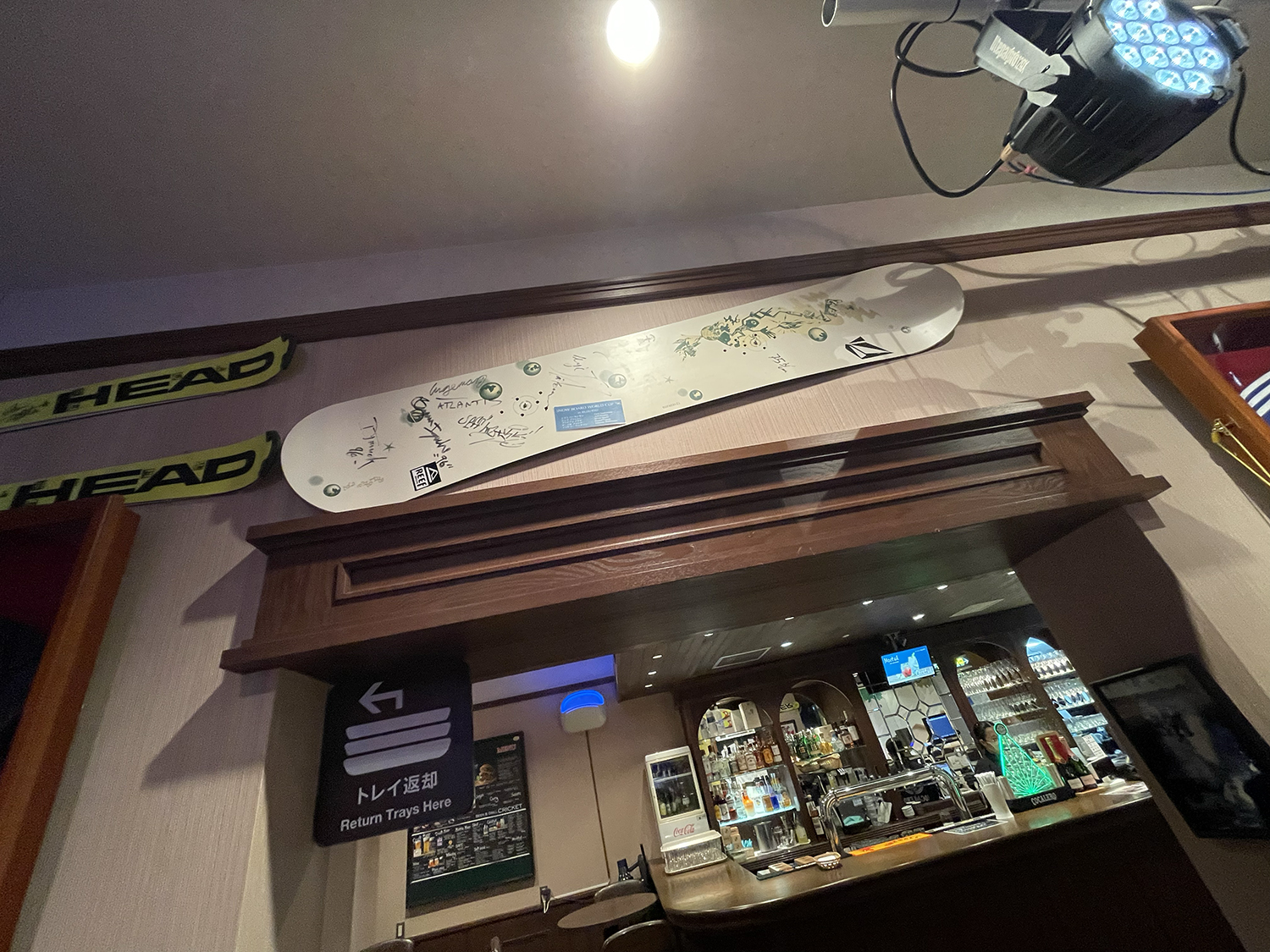 ジャズのLIVE演奏も行われるパブ「CRIKET」には、スノーボード界の神様テリエのサイン入りボードが飾られていた