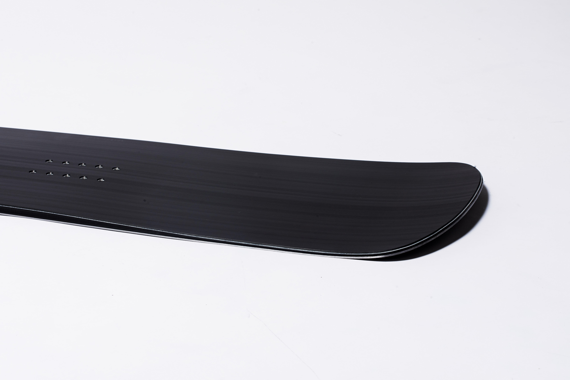 「X」はノーズ幅300mm/テール幅292mmのディレクショナルテーパード構造を採用し、前半のターン導入ではしなやかさ、後半の抜けではテールの粘りを発揮。しかもトップシートにはP-TEX素材を用いることで、振動吸収性と雪面追従性を強化。Xはメタルレスでありながらも高い安定感とエッジグリップを確保しており、フリーカービングはもちろん、テクニカル選やフリースタイルゲートなど多様なジャンルに対応する懐の深さを備えている。