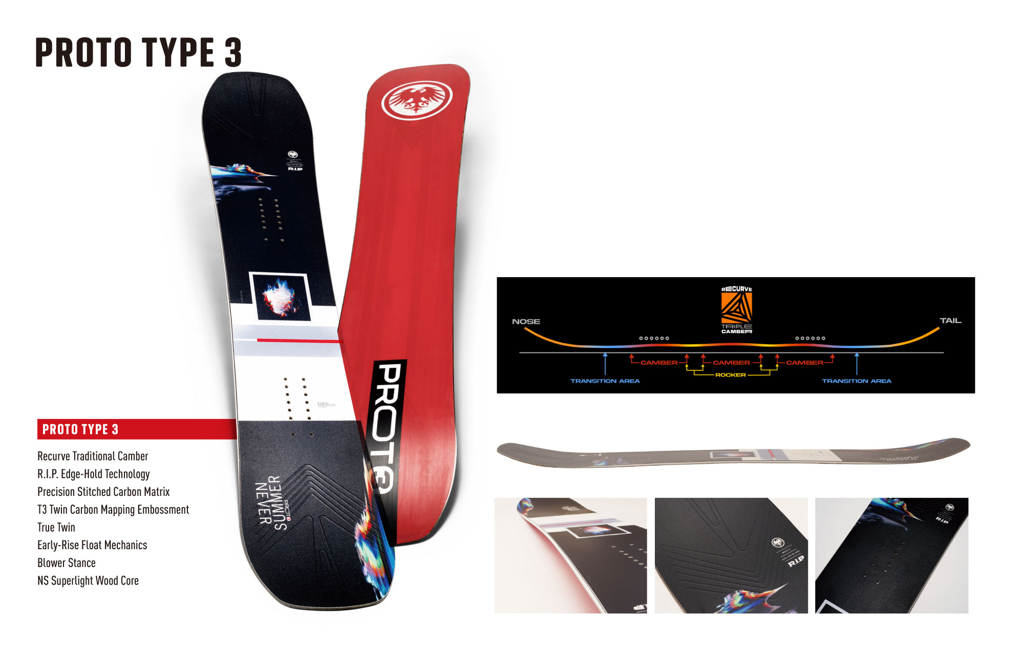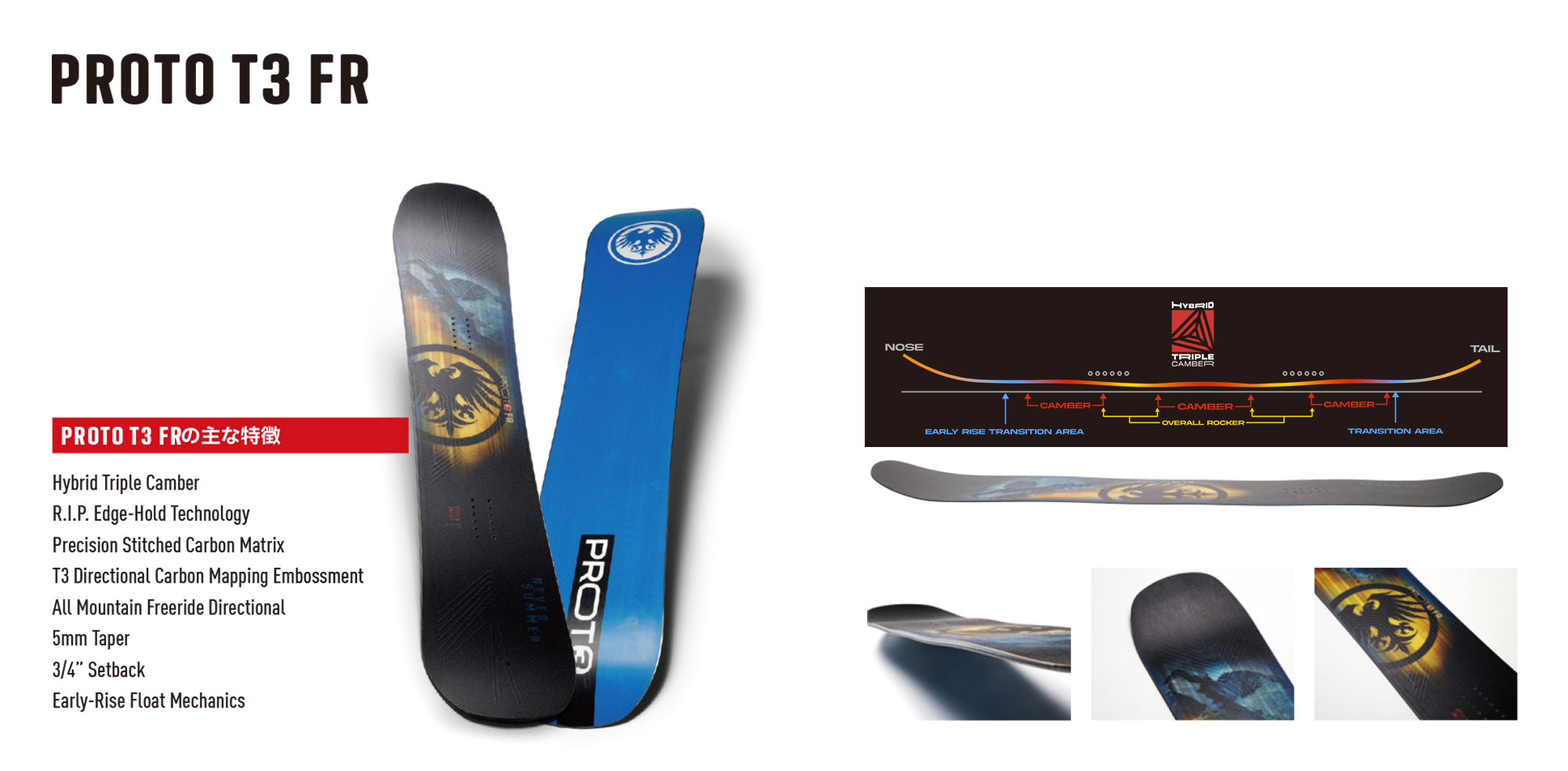 リカーブ・トラディショナルキャンバーを採用し、反発力と安定性を両立したPROTOシリーズの進化系。ジャンプの抜けや着地での安定感に優れ、パークや地形でのトリックにも対応。強力なスナップを生むカーボンマッピングにより、ビッグキッカーからナチュラルヒットまで安心して挑める。さらにパウダーやカービングも楽しめるオールラウンド性能を兼ね備え、フリースタイルを基軸にあらゆるフィールドを攻めたいライダーにとって理想的なボード。