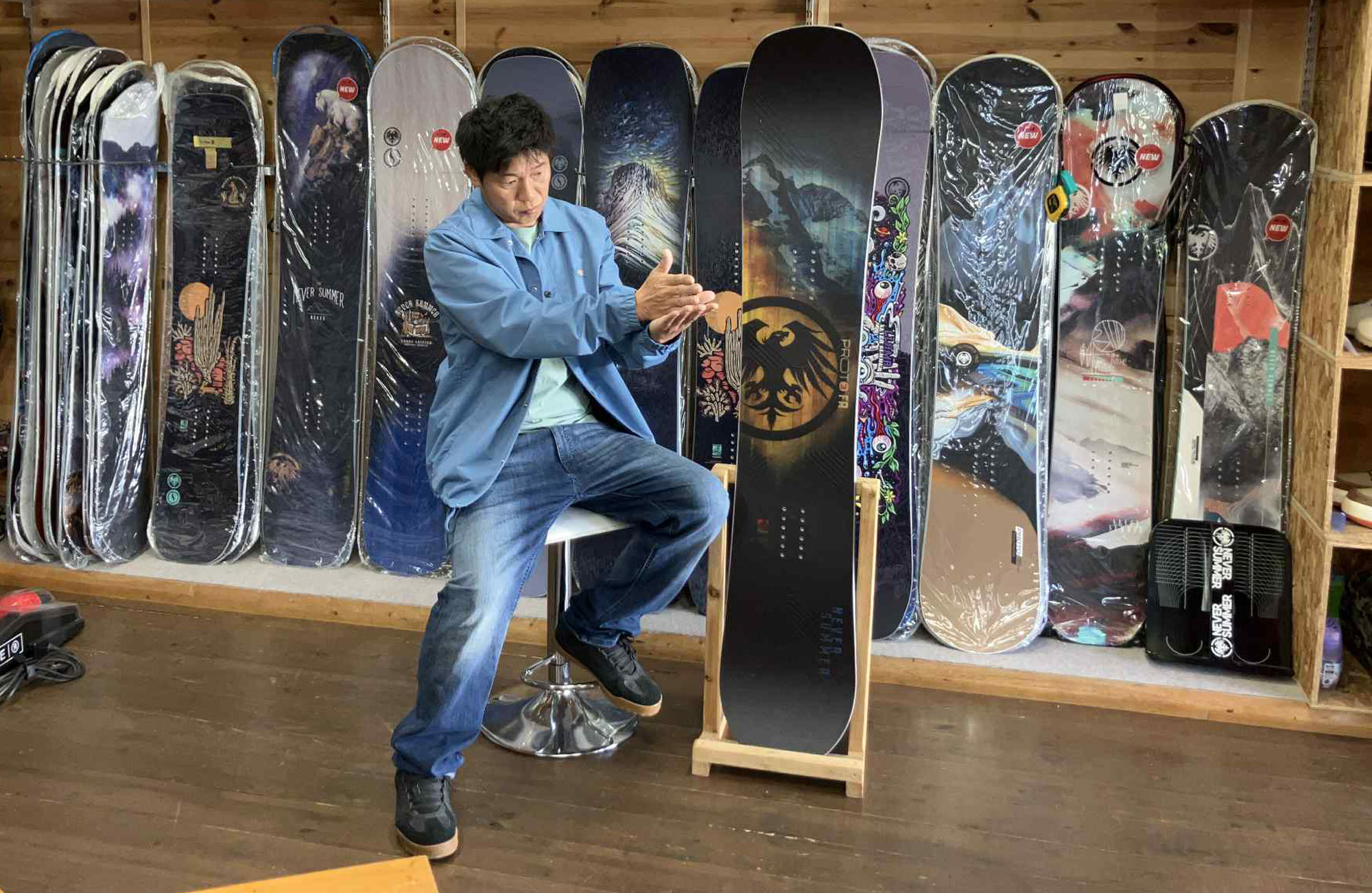 奈良のスノーボードプロショップ「Rooop.503」寺尾店長は「53歳になった今も、NEVER SUMMERに乗ることでまだ上達している」と語り、その性能を身をもって実感している。