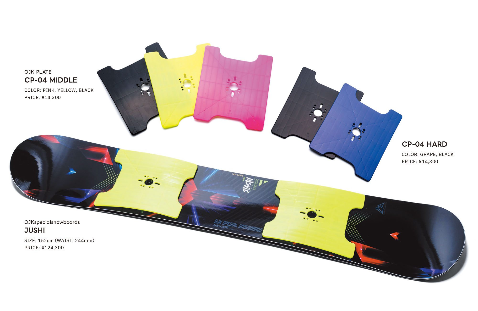 長年にわたり培われた樹脂成型技術と、テクニカル競技やレースのトップシーンで活躍し続ける実力派ライダーとの共同開発により進化を続けるOJK PLATE。来季も新たなる新型プレートが続々登場するが、なかでも「CP-04」は、軽さとしなやかさを追求し、ターン性能を次のステージへと導くプレートとして注目が集まっている。