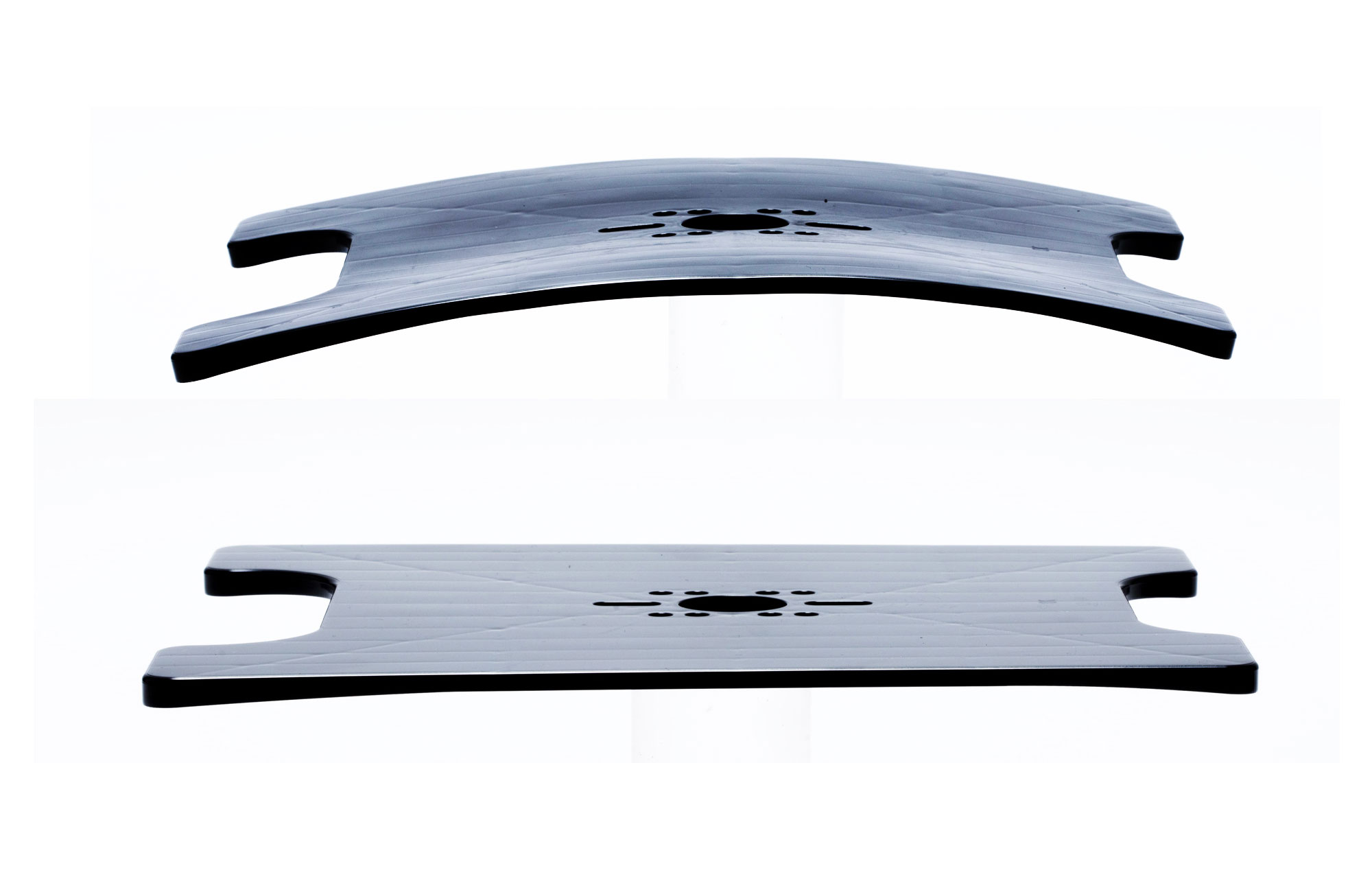 素材は2タイプを用意。MIDDLEはポリエチレン製で振動吸収に優れ、柔らかいボードにもなじみやすい。フレックスを活かしたいライダーや、プレート初心者にも扱いやすい仕様だ。一方のHARDはABS GR2000を採用し、グリップと反発が強め。よりダイレクトな操作感を求める上級者に適している。見た目はフラットながら、裏面のリブの高さ調整によって、効果的に力の伝達と解放を設計しているのも特徴だ。