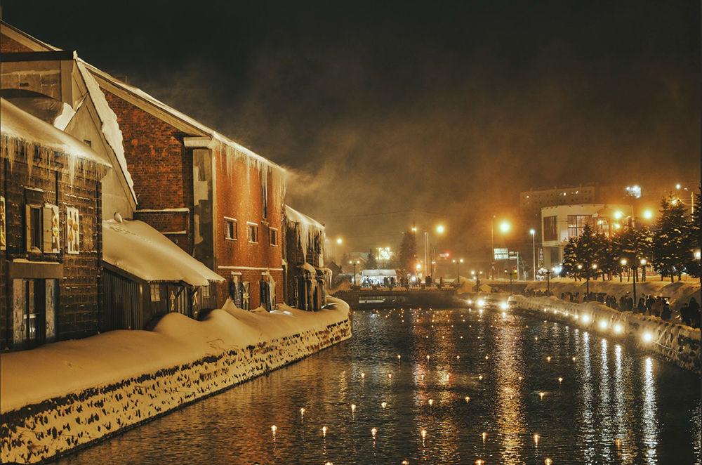 ガス灯に照らされて浮かび上がる小樽運河の冬景色は、白く淡く儚い。大正12年、運河完成時の雰囲気が残る街並みを辿るように流してゆくそのクルーズは、あなたの記憶を少し混乱させるかもしれない。だからこそ思い出に残る。滑り倒したあとの夜に、是非とも参加してほしいコンテンツだ。