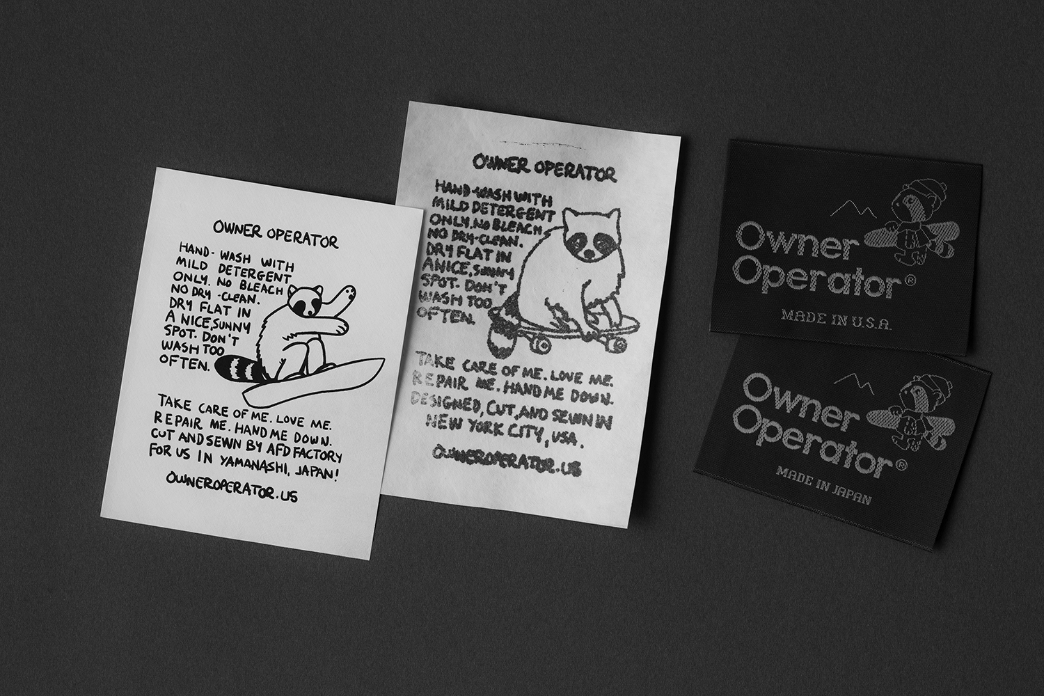 この取り組みは単なるライセンス生産ではなく、本国と日本が対等な関係でブランドを共作するプロジェクトである点が特徴的だ。パーツは可能な限りブルックリンから支給され、日本側は生地に日本の素材を選ぶ。日本が新たなデザインを提案すれば、本国がまずファーストサンプルを制作し、それを日本へ送り、双方が確認しながらパターンを微調整していく。工程は複雑だが、“OWNER OPERATORはひとつのブランドである”という純粋な信念が、国境を越えて共有されているからこそ実現する共同作業だ。結果として、日本で作られたウェアは本国サイトでも販売され、その逆も成立する。いまやブランドはアメリカ製・日本製という枠を超え、2国のカルチャーと技術が呼応し続けるユニークな存在へと進化している。