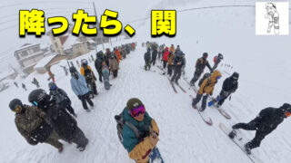 リフト券購入の列とリフト待ちの列。しかしどうしても滑りたくなる斜面があるのです、そう!そこには!
