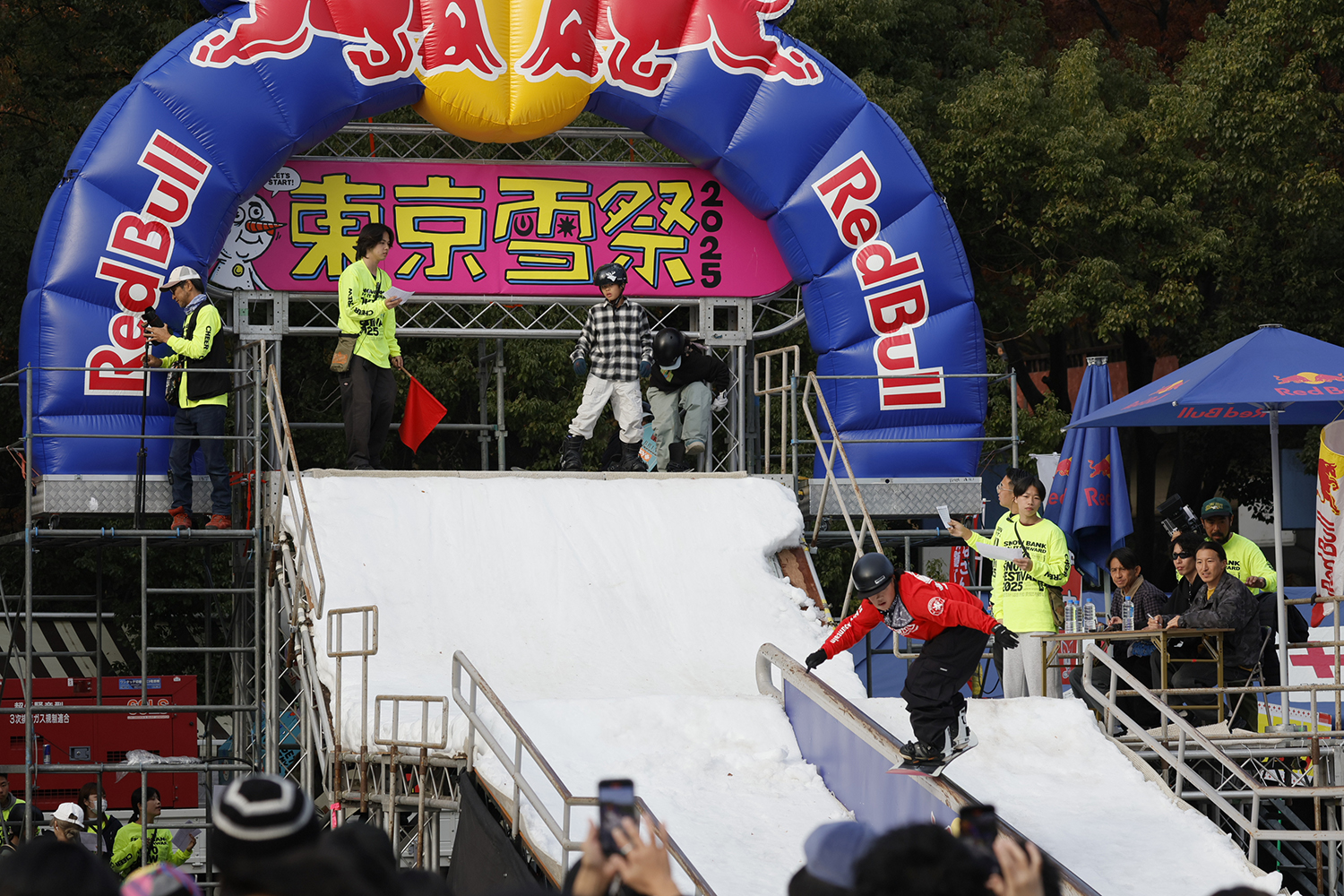 代々木公園に雪が舞う二日間。2025年で15回目を迎えた「東京雪祭 SNOWBANK PAY IT FORWARD」は、街のど真ん中でスノーボード、そして音楽と社会貢献が合わさる、日本屈指のアーバン・スノーイベントだ。会場では、一般参加からトップライダーまでが凌ぎを削る「JIB STYLE BATTLE」をはじめ、アーティストライブ、キッズ向けコンテンツ、献血・骨髄ドナー登録など多彩なプログラムが展開。来場者とライダーが一体となる熱気に包まれ、イベントの原点である「いのちをつなぐ」という理念が、15年の重みとともに強く共有された。この記事では、イベントのMCを務めて15年にもなる藤沼 到にこのイベントを振り返ってもらった。