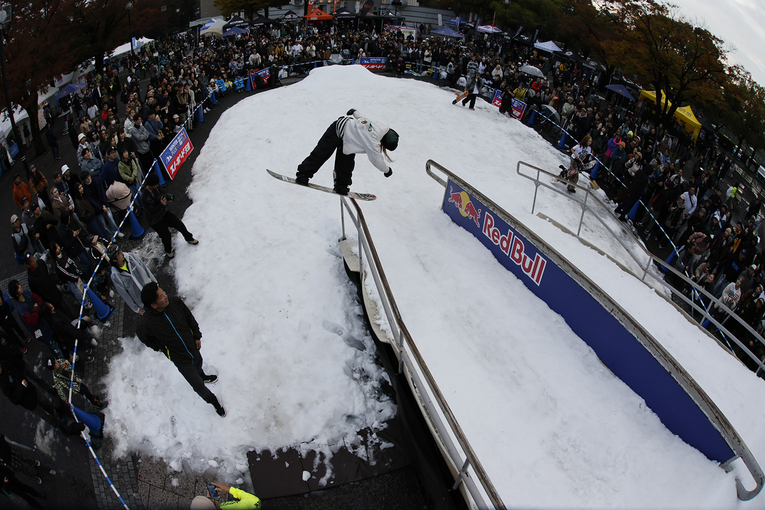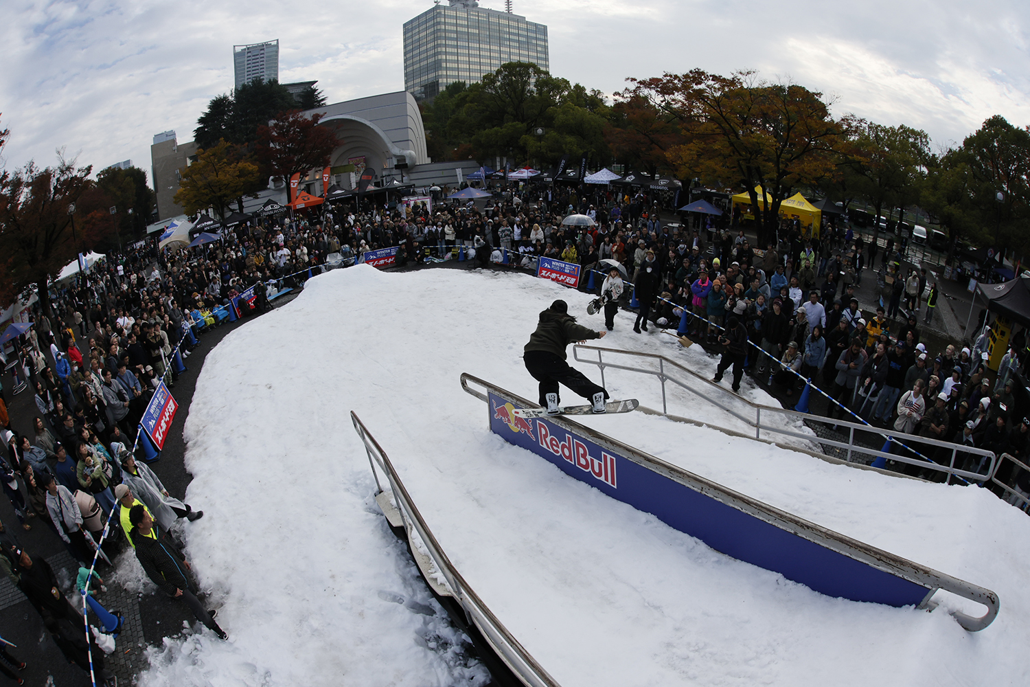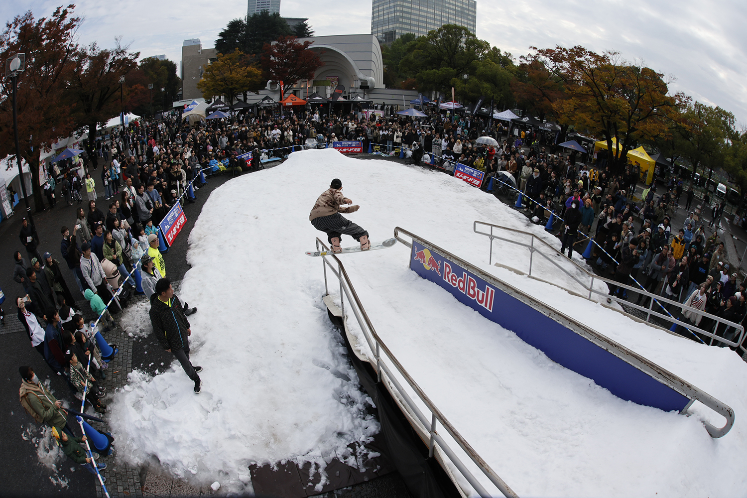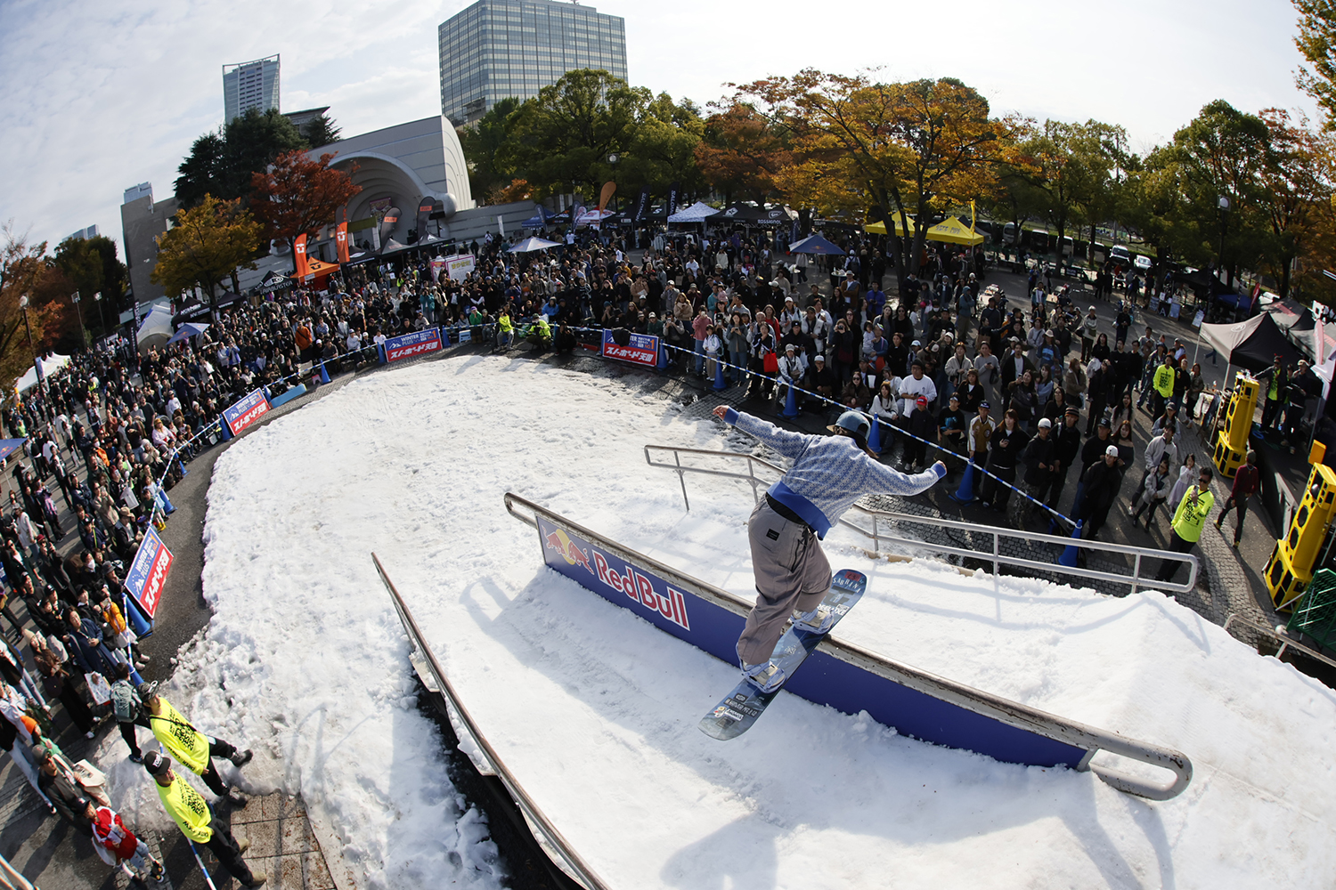 こちらのイベントは最寄り駅の原宿駅や渋谷駅から1キロ圏内という街のど真ん中、日本東京若者カルチャーの中心地とも言える場所で、15年に渡って開催され続けている、スノーボーダー&スキーヤーが参加できる日本スノーシーンを代表するアーバンイベントです。