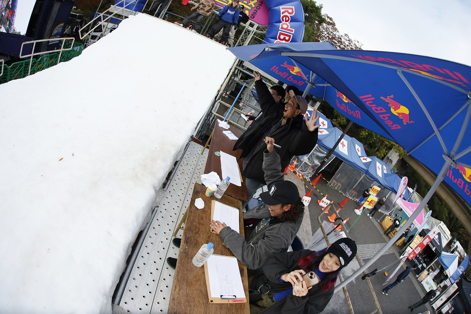 ジャッジたちはライダーたちのアツい滑りを見て興奮気味!