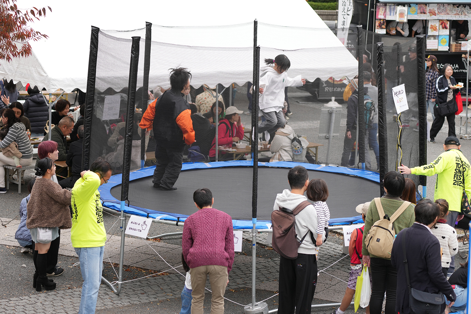 会場内にはトランポリンも設置