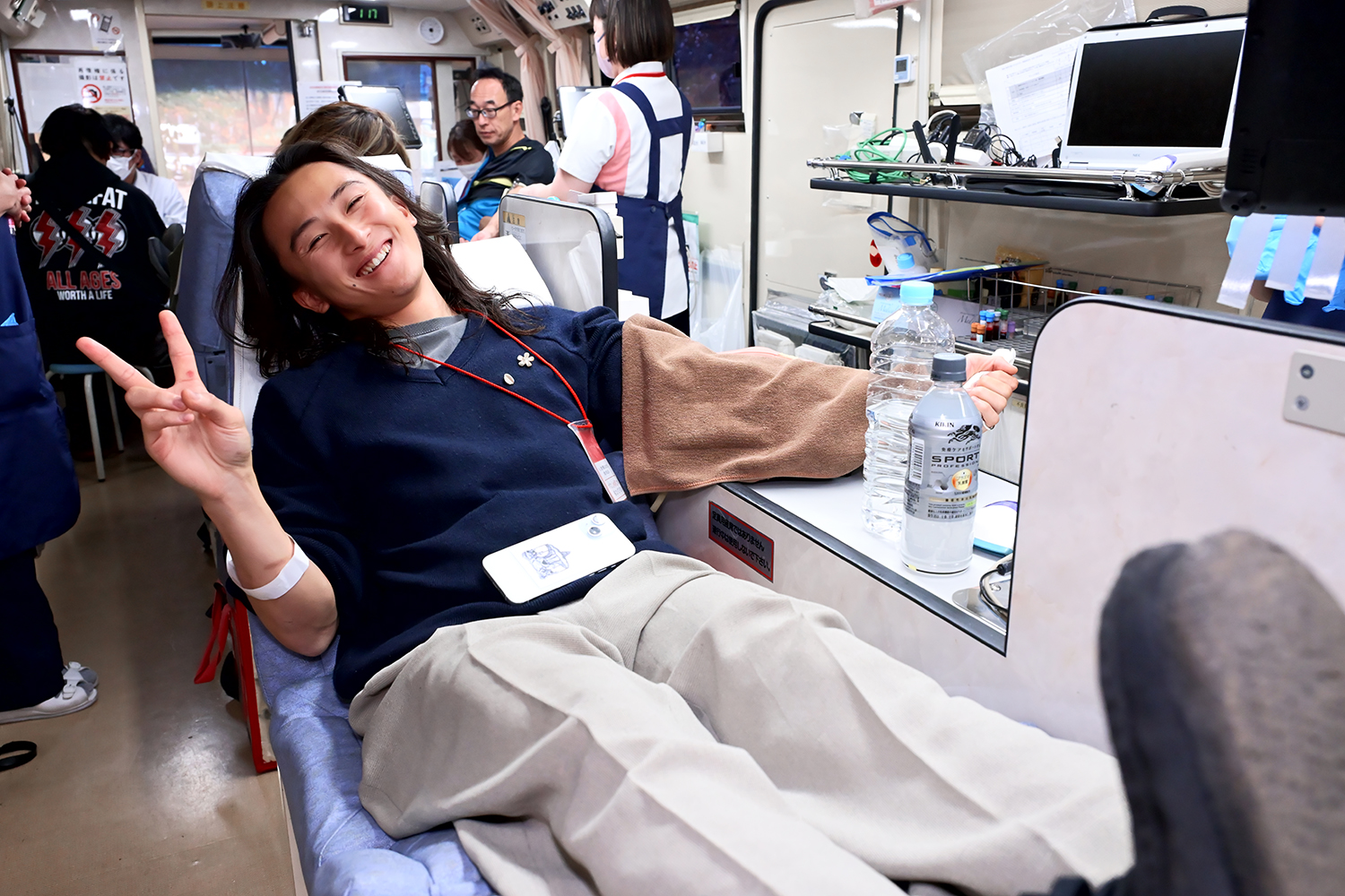 ライダー長澤颯飛も笑顔で献血をおこなった