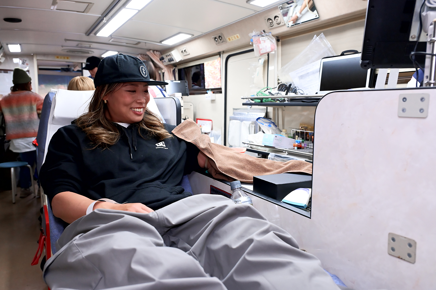 スイカこと石原晴菜も献血。このように多くのライダーたちも献血に参加する