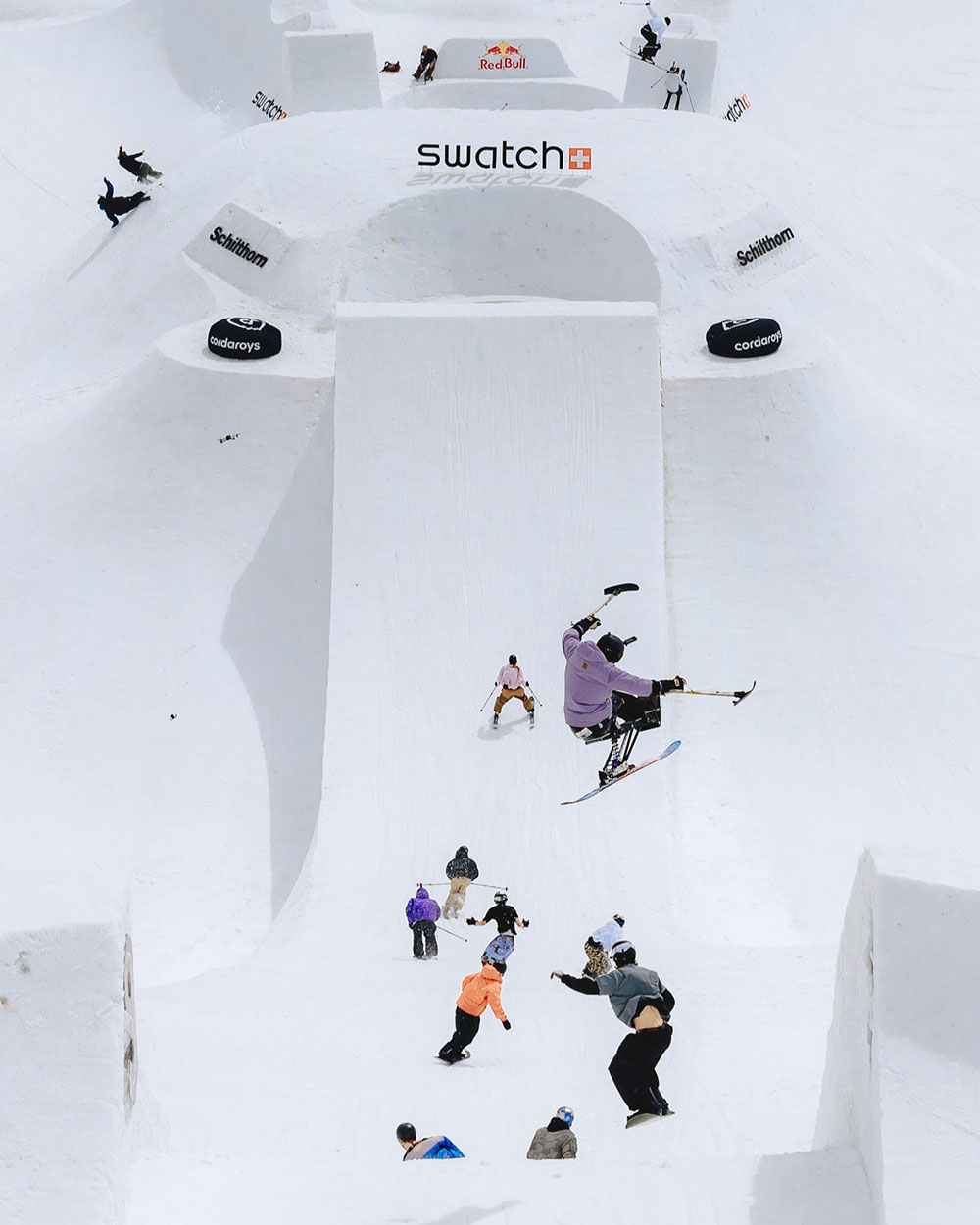 Swatch Ninesの代名詞とも言えるのが、ライダー目線で設計された“乗りやすさ”を重視したコース。今年も究極のトリックを可能にするセットアップが誕生する。世界のトップアスリートたちが集まるワークショップで構想されたコースには、Swatch Proteamの一員でありハーフパイプ界の新星・平野海祝も設計段階から参加予定。さらに、スケート要素を取り入れたマルチスポーツ型のセクションも展開される見込みだ。